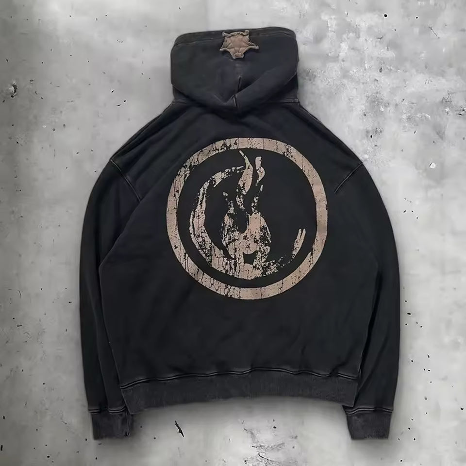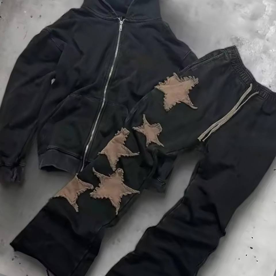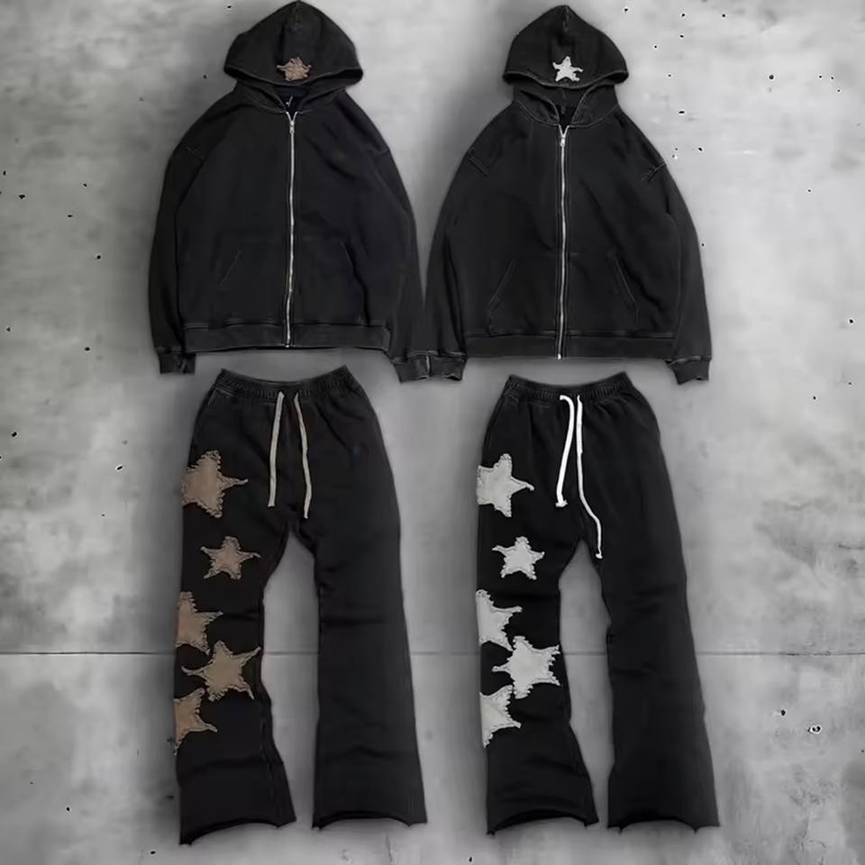 Conjunto de sudadera con capucha y pantalón de chándal acampanado de algodón con bordado desgastado personalizable