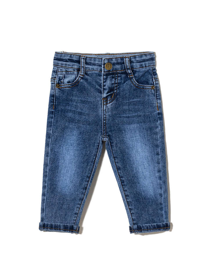 Jeans de Mezclilla Elásticos para Niños, Personalizables, Blancos Desgastados, Corte Ajustado, Cintura Elástica, Cinco Bolsillos Clásicos, para Primavera/Otoño