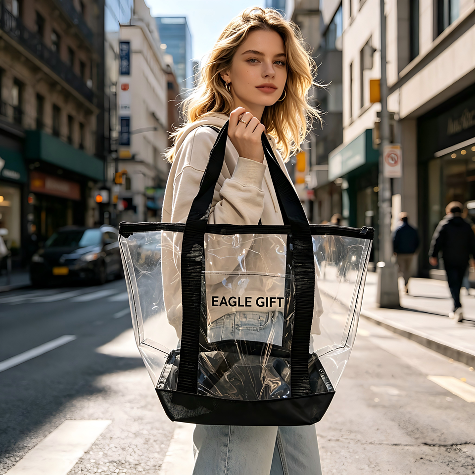 Bolsa de Mano Personalizable con Doble Asa, Transparente e Impermeable, de PVC para Promociones
