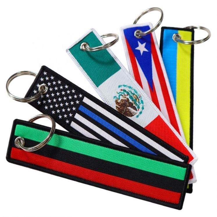 Llavero de Cuero Personalizable con Bordado a Doble Cara, Etiqueta de Tela con Bandera para Pilotos, Llaveros Promocionales con Mosquetón