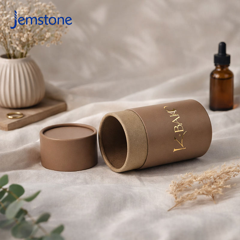 Envase de Cilindro de Papel Kraft Biodegradable Personalizable y Ecológico para Aceites Esenciales y Cosméticos para el Cuidado de la Piel