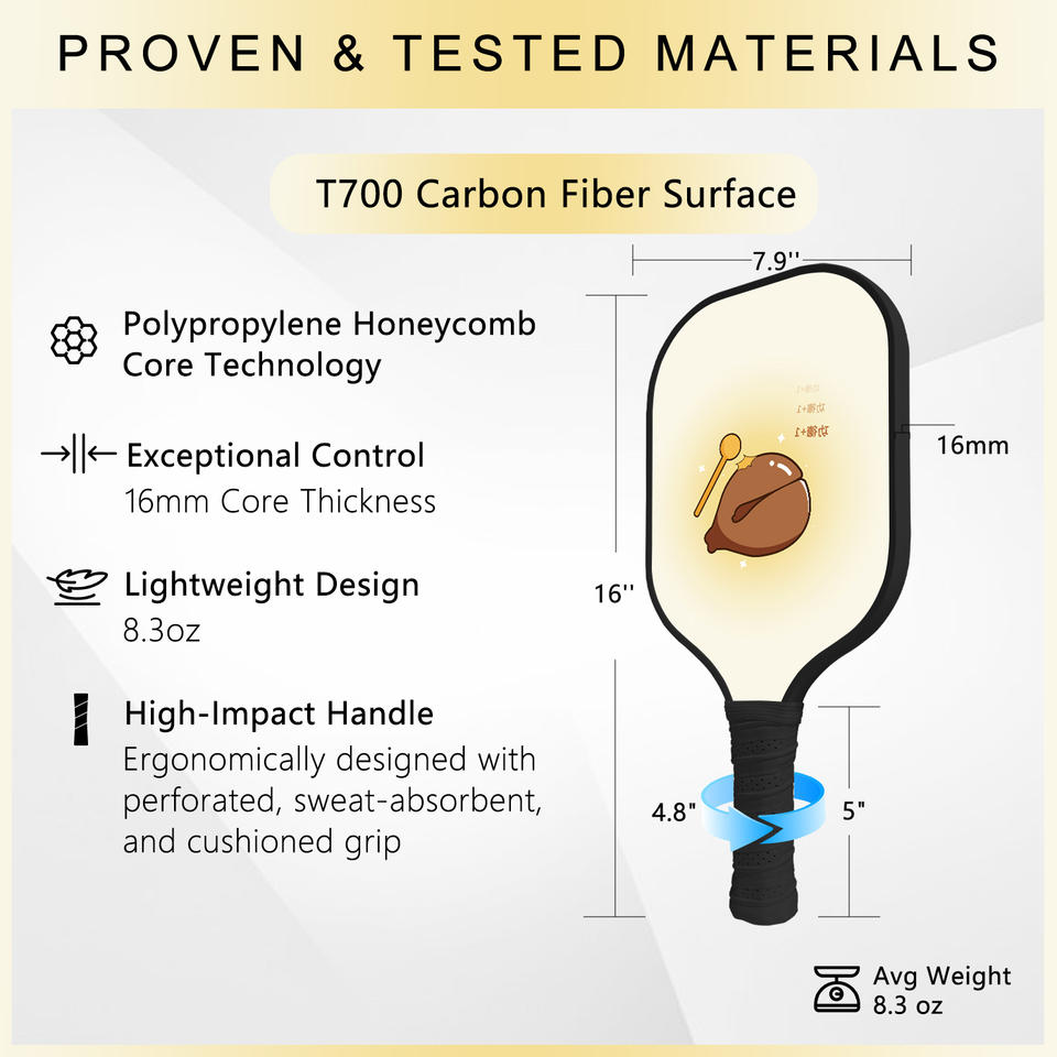 Raqueta de Pickleball Personalizable sin Bordes, de Fibra de Carbono T700, Moldeada en Frío, Núcleo de Panal, Ligera, Duradera, para Entretenimiento