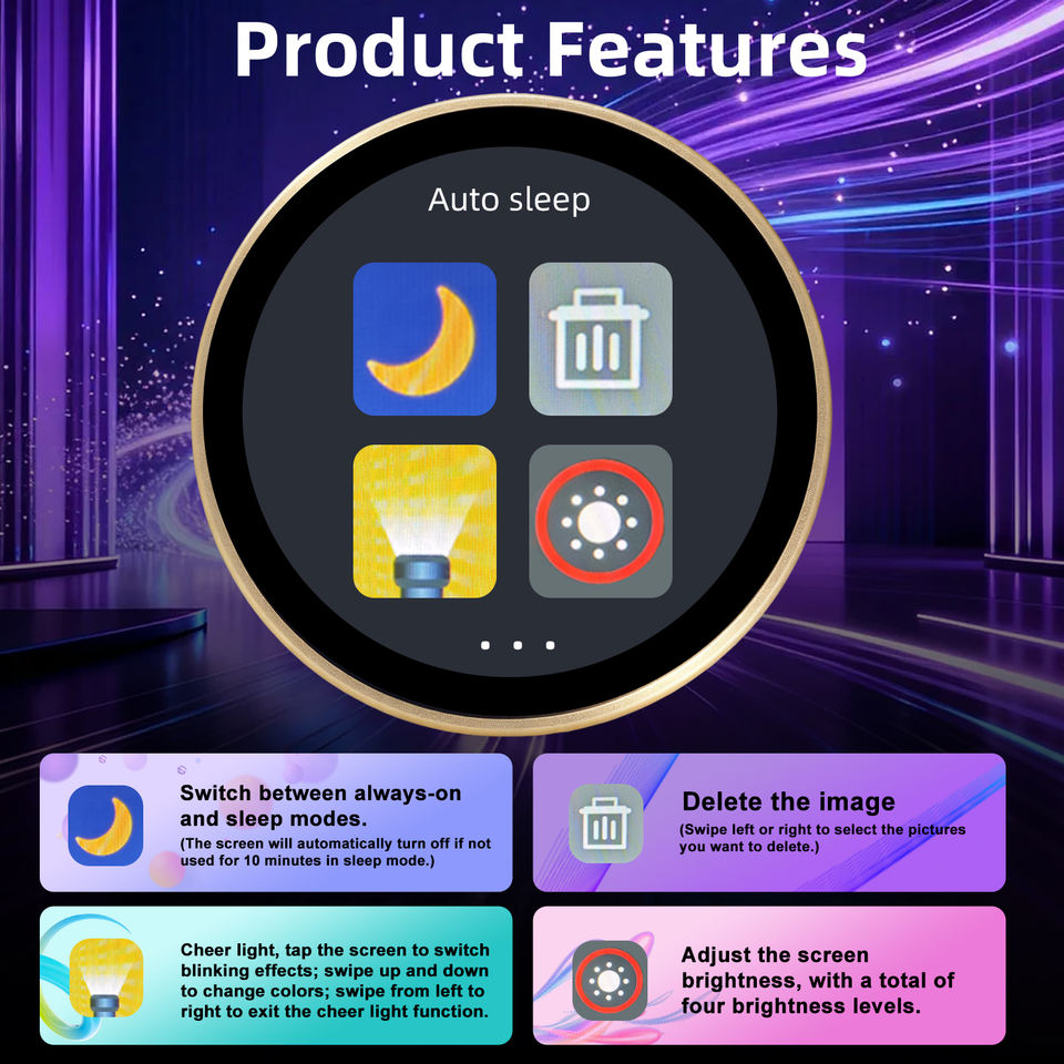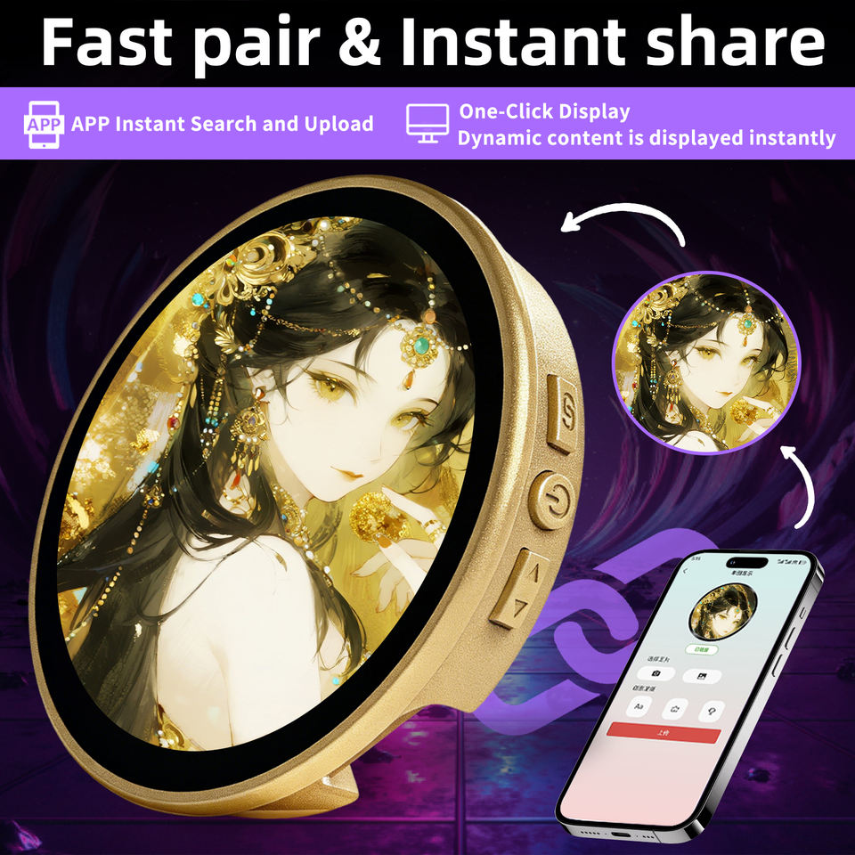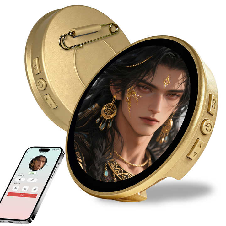 Insignia Electrónica Personalizable con Aplicación para Subir Archivos JPG, PNG, GIF, Pantalla Dinámica de Carrusel, 58 mm de Diámetro, 10 mm de Grosor, Accesorio Moderno
