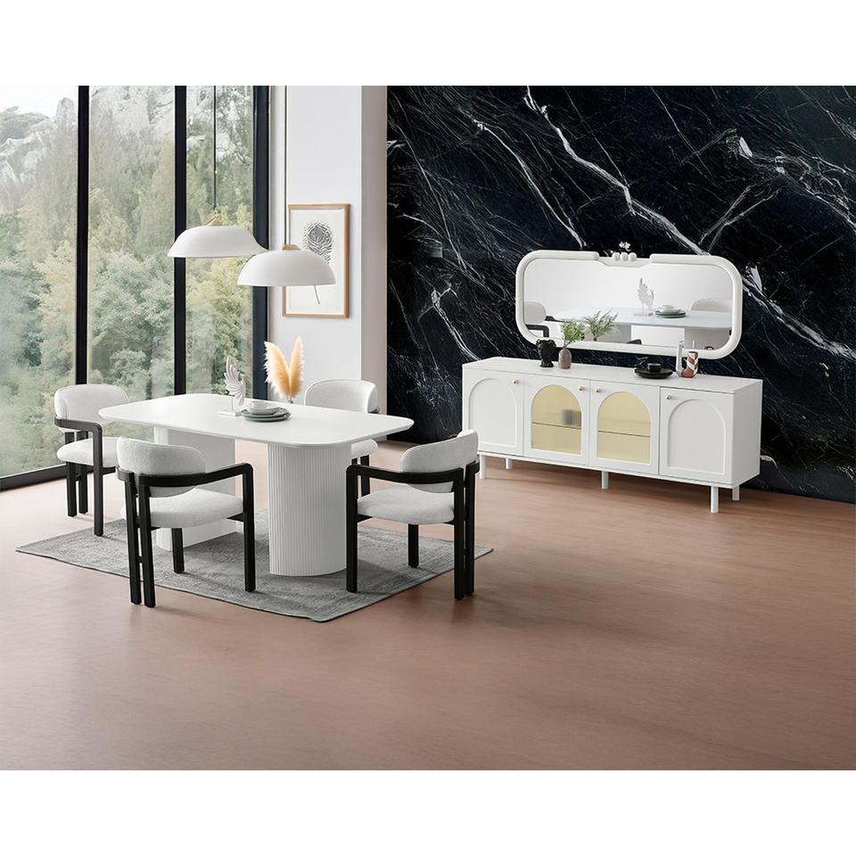 Juego de Comedor Moderno Extensible de 6 Piezas en Blanco, Estilo Escandinavo Mozart, Listo para Exportar