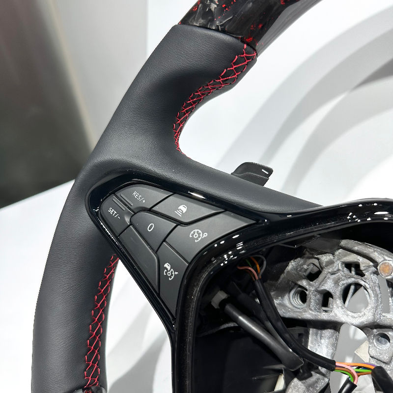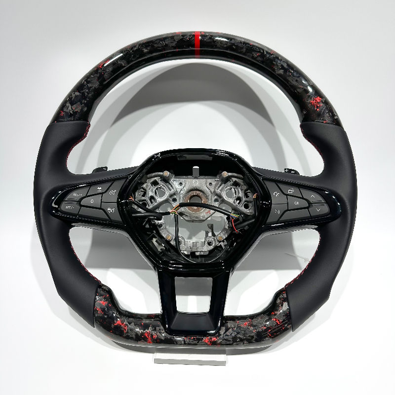 Volante Deportivo Personalizable de Fibra de Carbono Roja Forjada, Nuevo de Fábrica, con Alcántara, LED y Cuero Perforado para Renault Clio 3 4 5