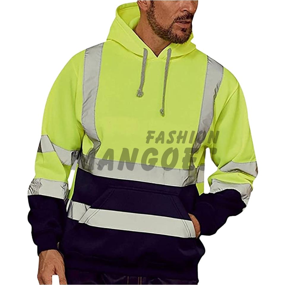 Sudadera con Capucha Personalizable de Forro Polar con Cinta Reflectante, Cremallera Frontal, Bolsillos, Chaqueta de Seguridad ANSI Clase 1, Impermeable, MANGOES FASHION, Venta al Por Mayor