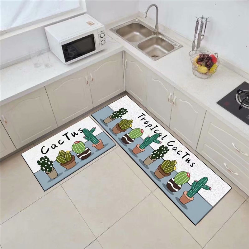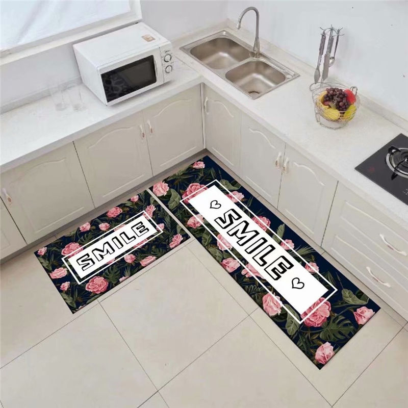 Juego de Alfombrillas de Cocina Florales Personalizables, Material de Terciopelo de Poliéster con Base Antideslizante de Puntos, Alfombrillas Lavables Acolchadas
