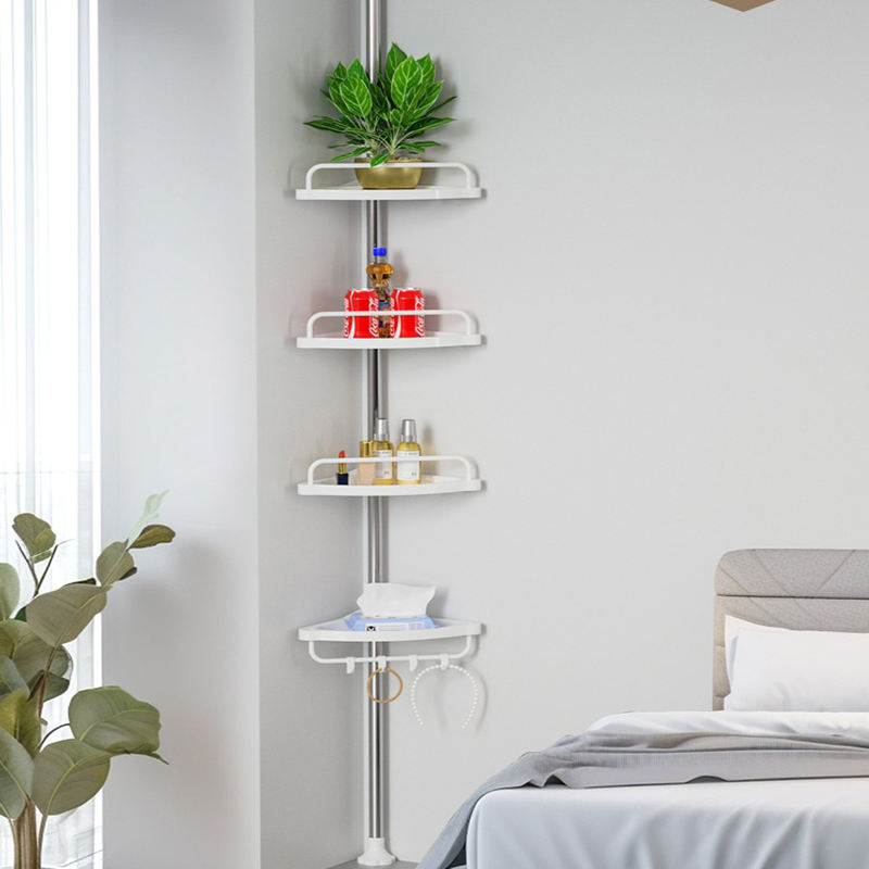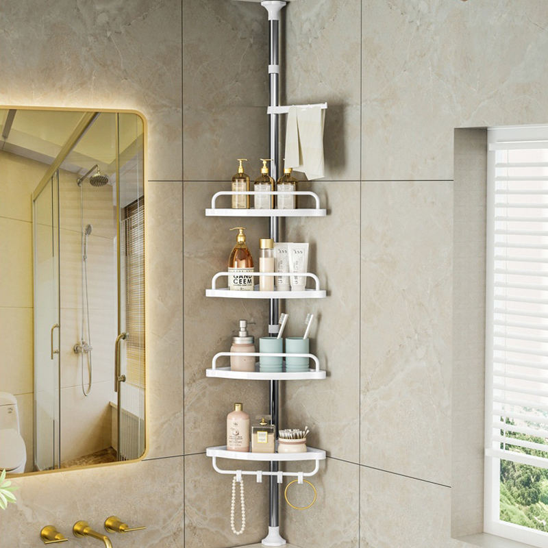 Estante de Almacenamiento Independiente Personalizable de Cuatro Niveles, Estante de Ducha Telescópico Ajustable, Estante de Almacenamiento Esquinero para Baño