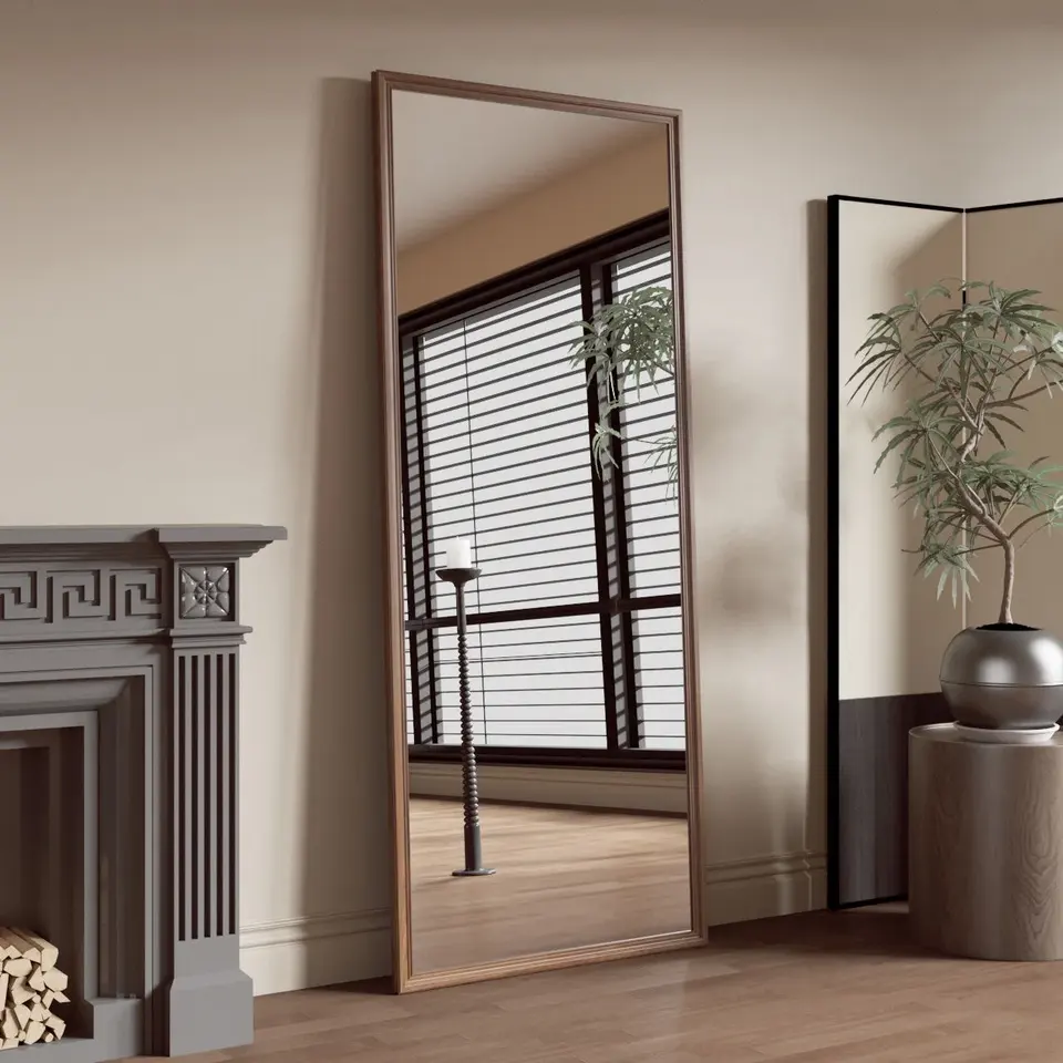 Espejo de piso moderno de cuerpo completo personalizable con marco de metal Decoración para el hogar de pie