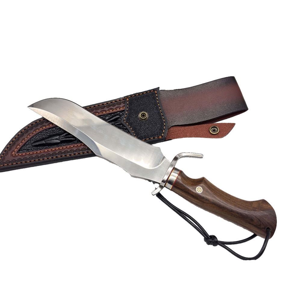 Cuchillo Táctico de Caza de Hoja Fija Personalizable, Hoja de Acero Inoxidable con Empuñadura de Madera, 170 mm de Longitud, Orificios para Colgar, Funda de Cuero