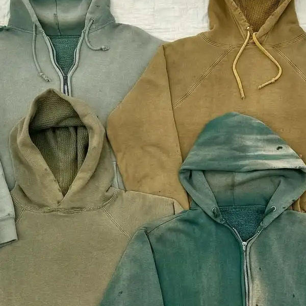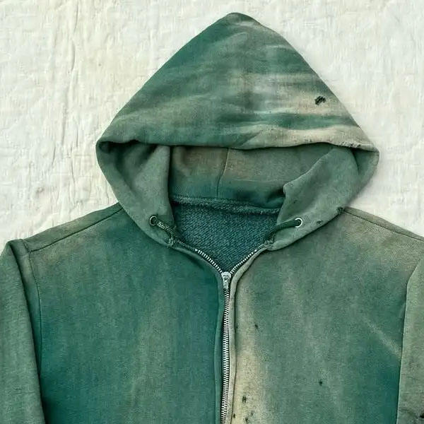 Sudaderas con capucha verdes personalizables con cordones en varios tonos y estilos desteñidos con cremallera lavada con ácido