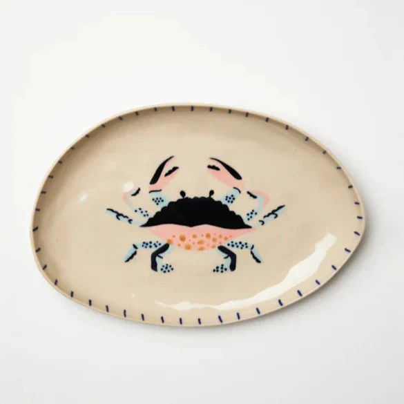 Juego de Vajilla de Cerámica Pintada a Mano Personalizable, Platos y Tazas Coloridos con Diseño de Vida Marina, Cangrejo, Langosta, Caballito de Mar
