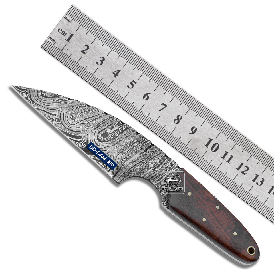Cuchillo de Caza Personalizable Hecho a Mano DD-DAM-380, Hoja de Acero de Damasco, Punta Caída, Grosor de 4mm, Mango de Madera de Palisandro Exótica con Grabado