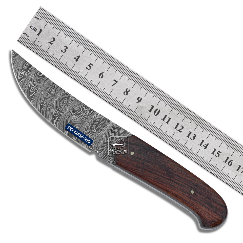 Cuchillo de caza personalizable hecho a mano, hoja de acero de Damasco, mango exótico de palisandro, Funda de cuero repujado, OEM grabado con láser