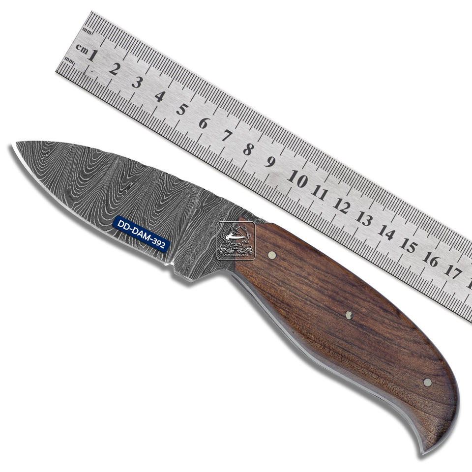 Cuchillo de Caza Personalizable OEM Hecho a Mano DD-DAM-392 con Hoja de Acero de Damasco, Mango de Madera de Nogal Exótico y Funda de Cuero Grabado HRC