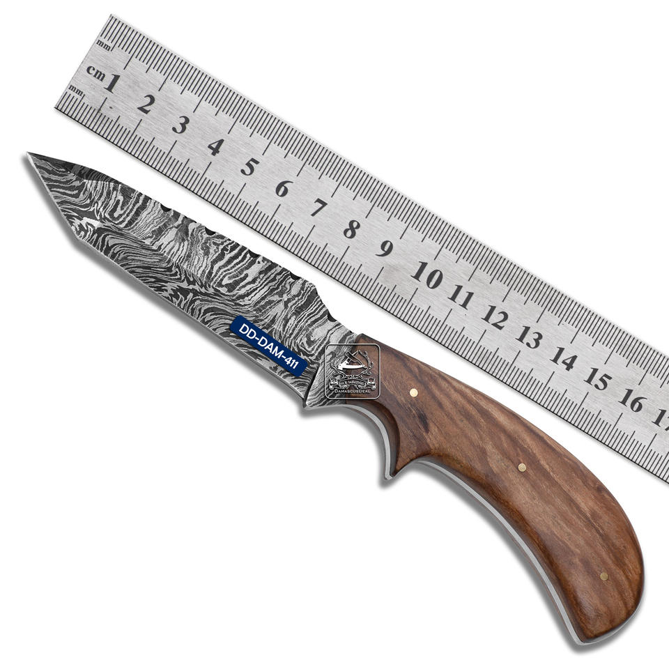 Cuchillo de Caza Personalizable Hecho a Mano, Hoja de Acero Damasco DD-DAM-410 de 0.20 Pulgadas de Grosor, Hoja No Ajustable, Madera de Nogal Exótica