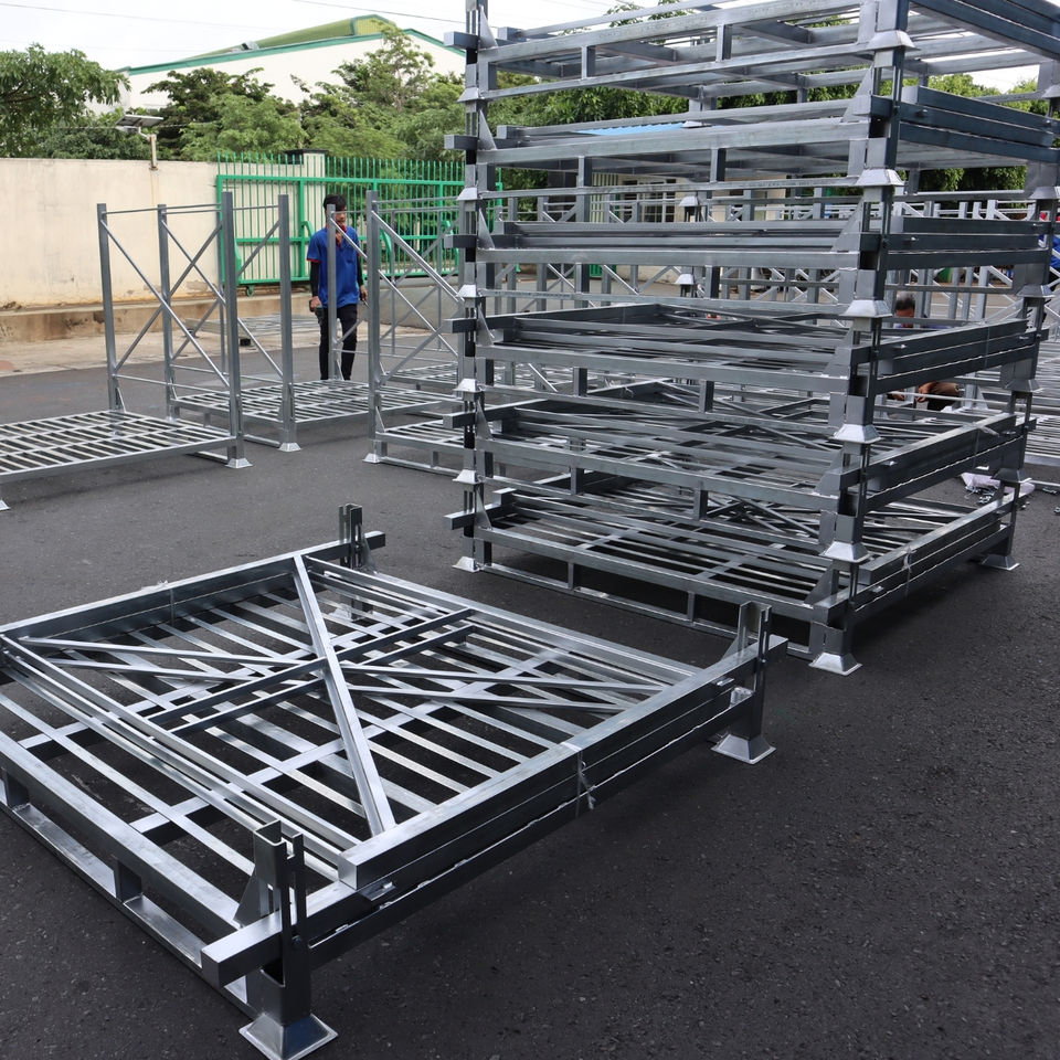 Paleta de Acero Plegable con Diseño Colapsable, Estructura Resistente y Alta Capacidad de Carga, Ideal para Almacenamiento en Almacenes