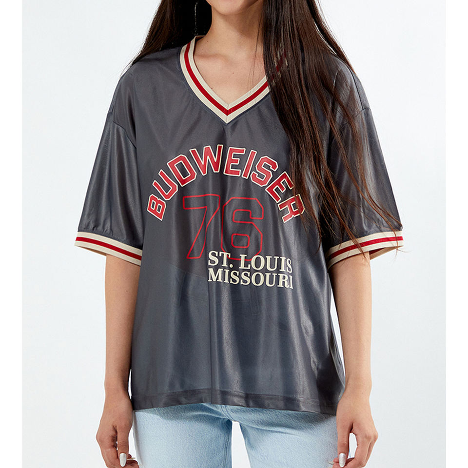 Camiseta de fútbol personalizable de alta calidad con cuello en V, camiseta de malla transpirable con diseño de moda americana holgado para deportes de verano