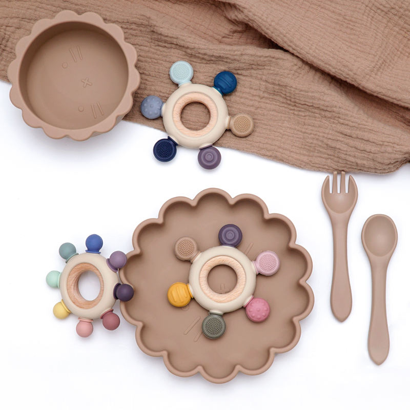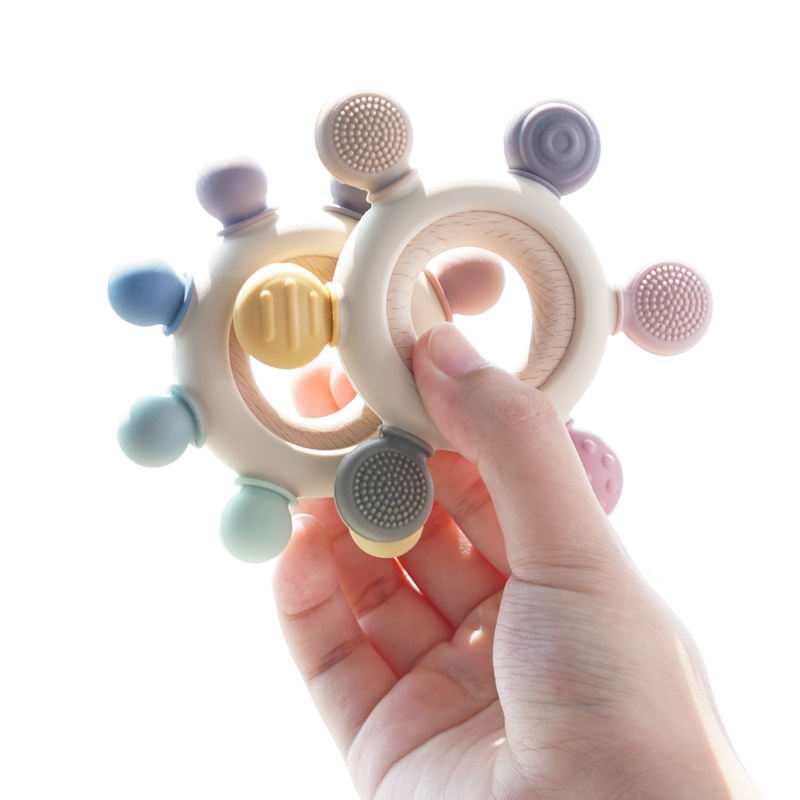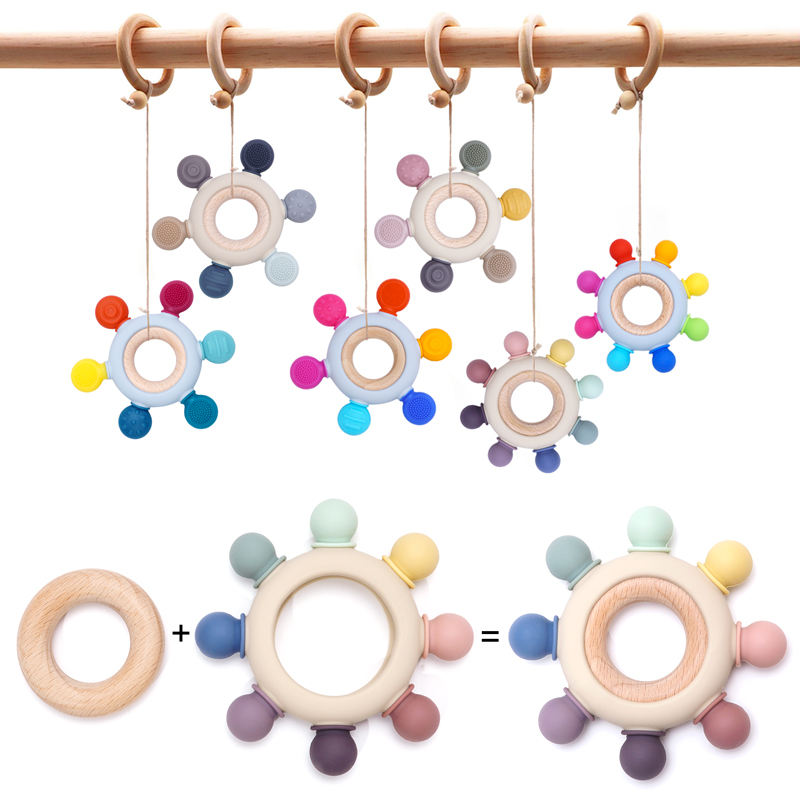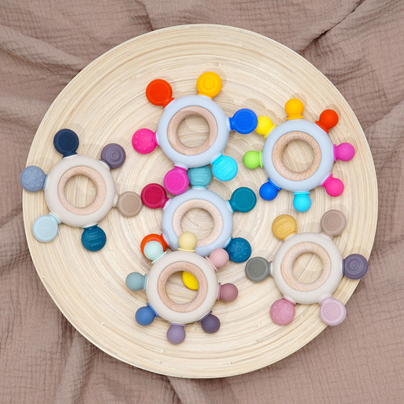 Juguetes Sensoriales Educativos de Alta Tecnología Personalizables, Anillo de Madera Irrompible y Mordedores de Silicona, Estilo de Juguete Suave