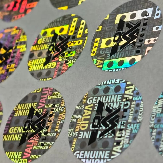 Etiqueta de Seguridad Personalizable, Holográfica, Impermeable, Anti-Falsificación, a Prueba de Manipulación, con Forma Ovalada para Protección de Marca