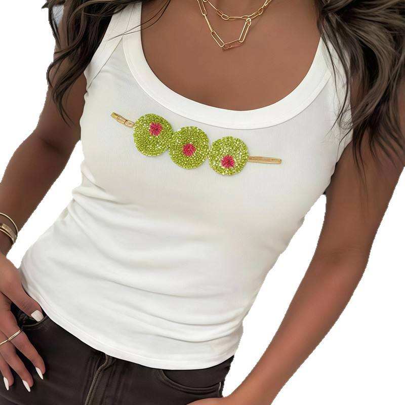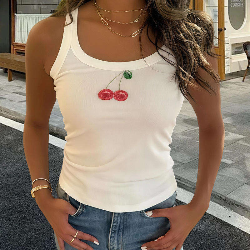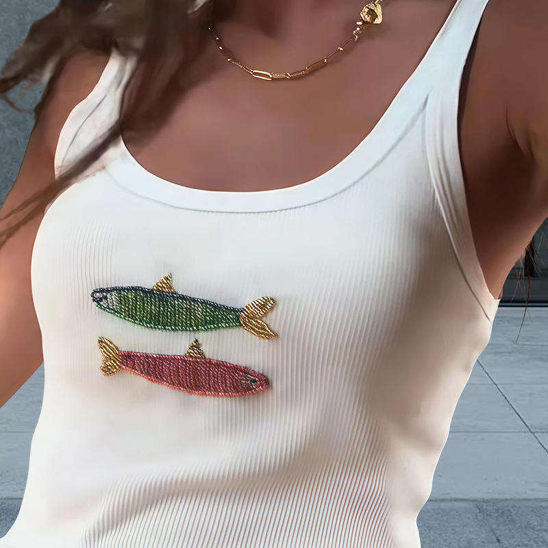 Top de tirantes anchos sin mangas para mujer, de punto acanalado, con bordado de pez, cuello redondo, suave, personalizable, superventas