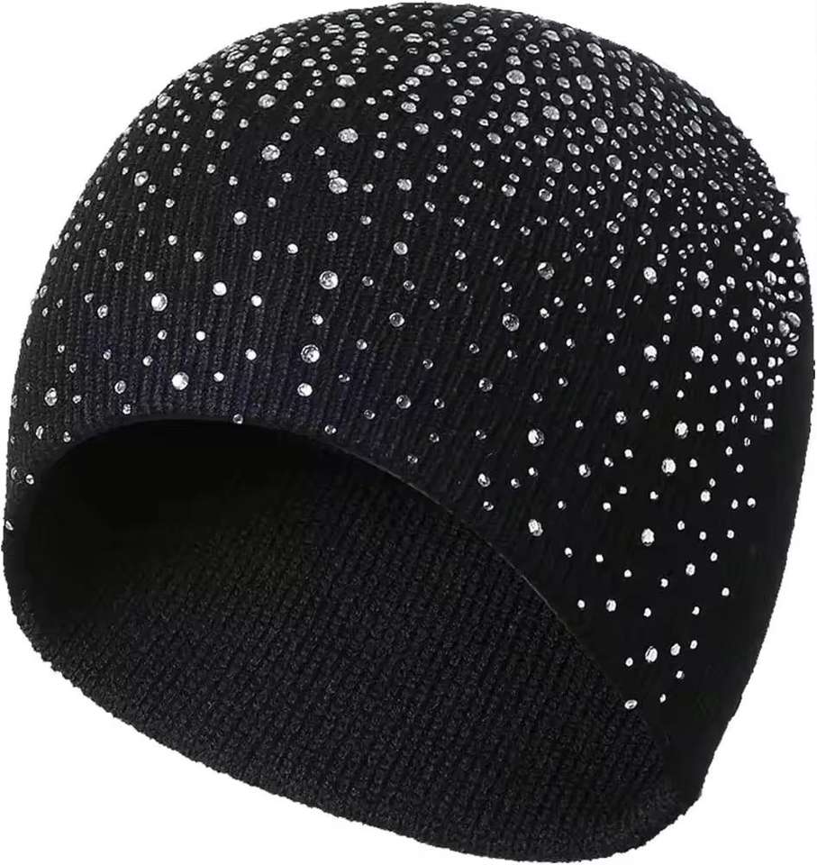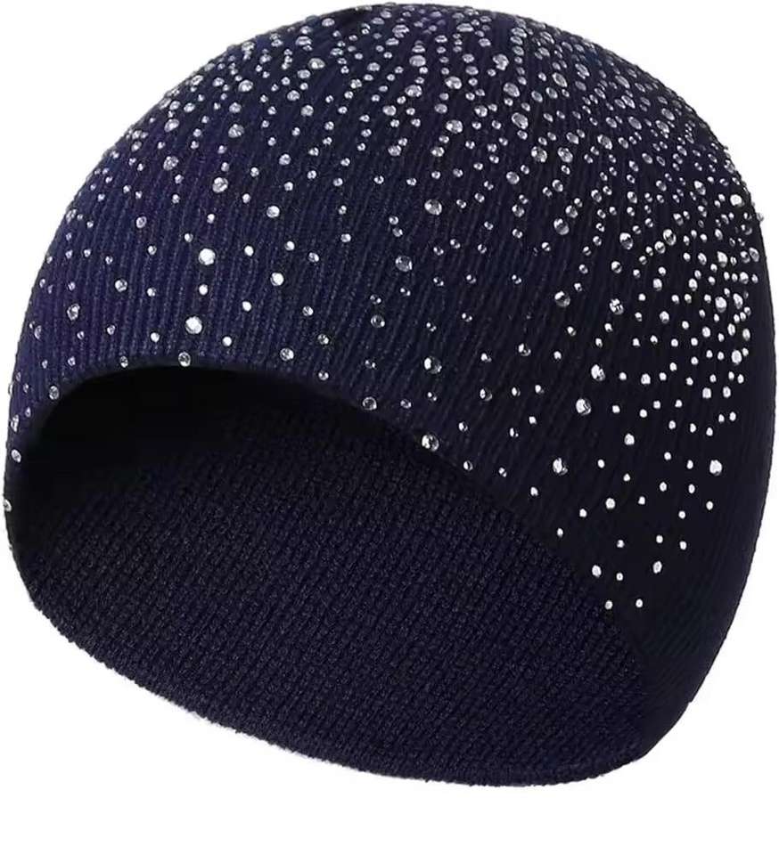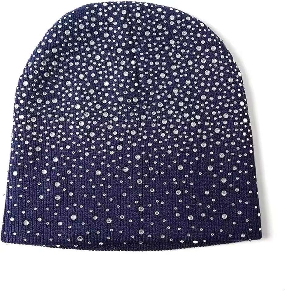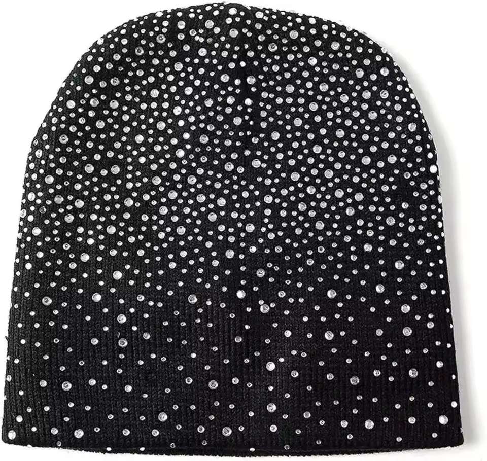 Gorro de Punto Personalizable con Adornos de Cristal Acrílico Hechos a Mano, Logotipo Personalizado y Pedrería