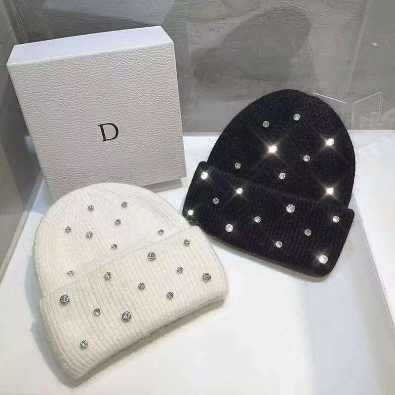 Gorro de Punto Personalizable con Adornos de Cristal Acrílico Hechos a Mano, Logotipo Personalizado y Pedrería