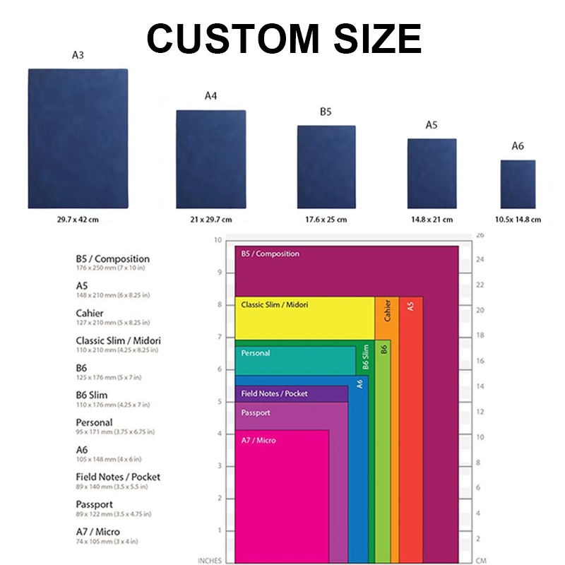 Tamaño:A3/A4/A5/B5/A6/B6/cuaderno de bolsillo o personalizado