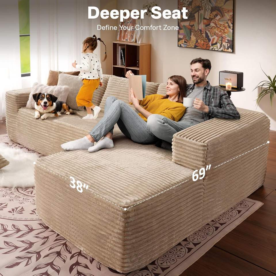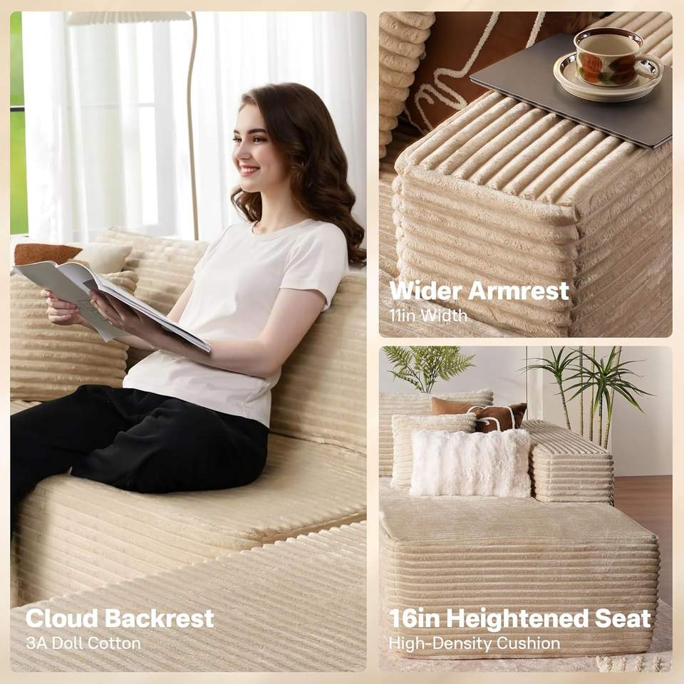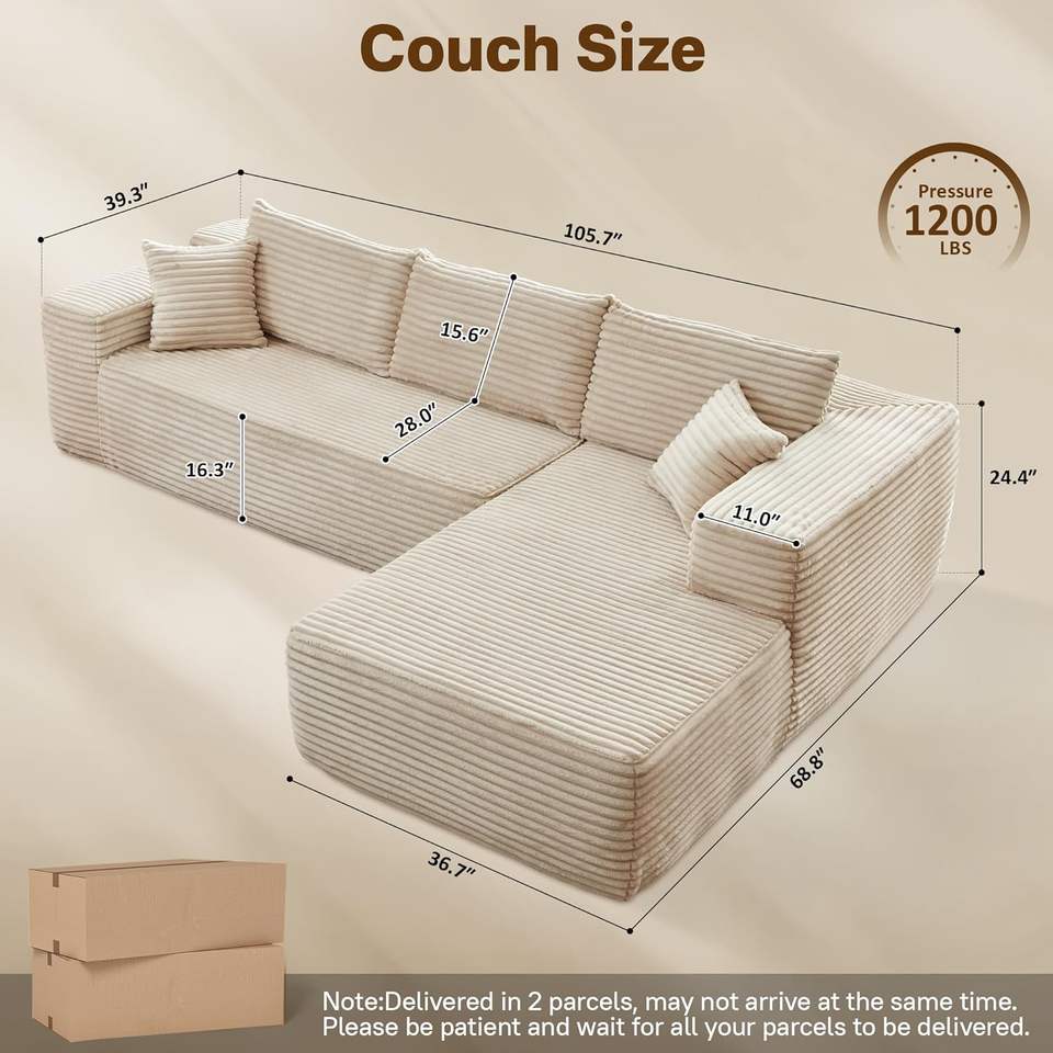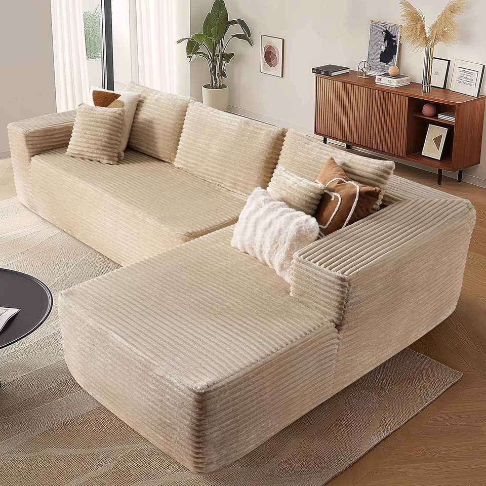 Sofá seccional en L personalizable, moderno, de pana acolchada, empaquetado comprimido, para sala de estar, dormitorio o apartamento