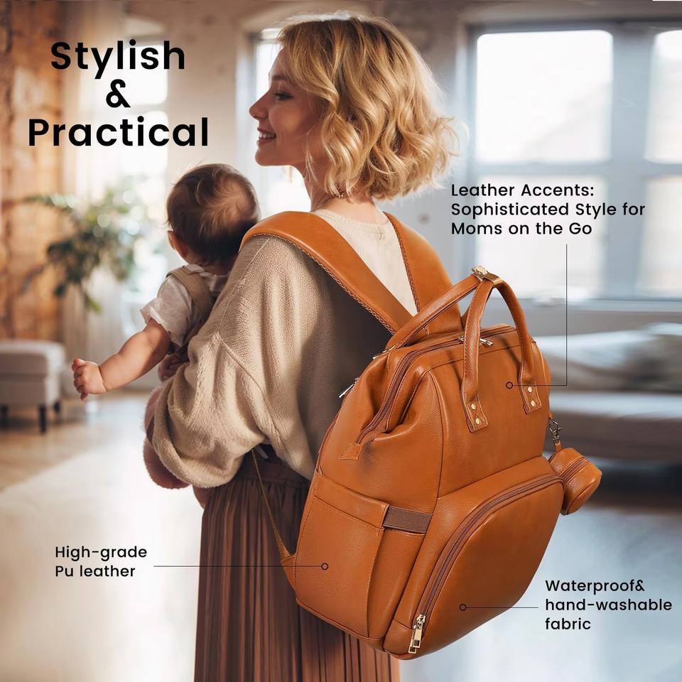 Mochila Pañalera Impermeable 4 en 1 con Logotipo Personalizable, para el Cuidado del Bebé, con Colgador para Botella y Compartimento Aislado