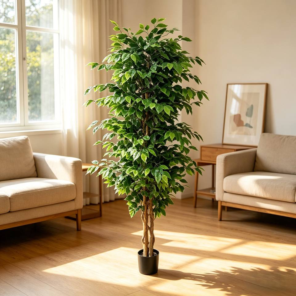 Árbol de Banyan Artificial Grande Personalizable, Planta Tropical de Interior para Decoración de Centros Comerciales, Hoteles, Vestíbulos, Bodas, Fiestas y Eventos