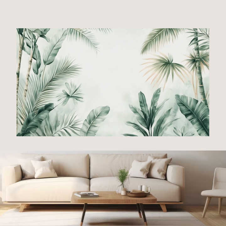 Diseño:Pintura personalizada de plantas tropicales Decoración de lona verde para sala de estar