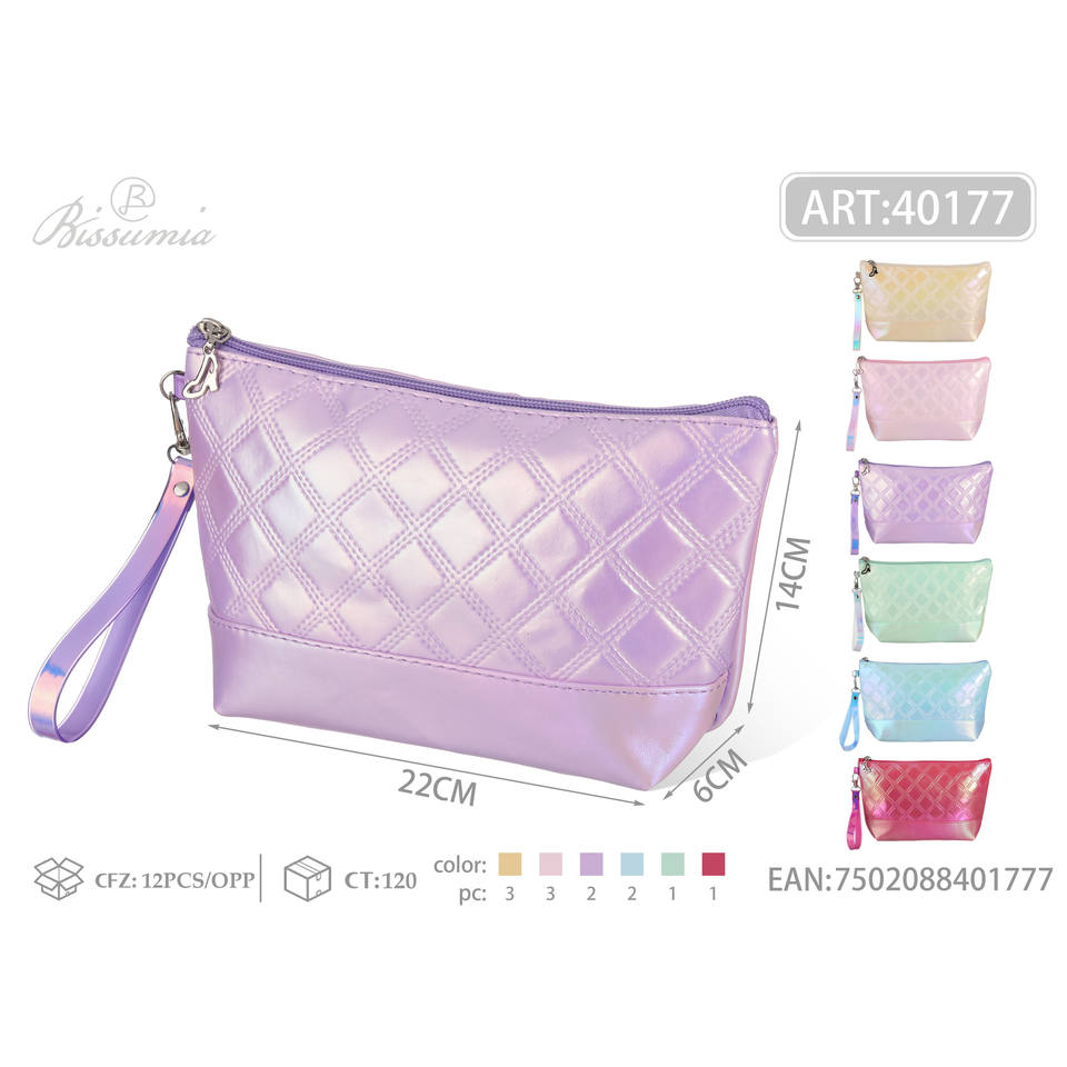 Bolsa cosmética Hexagonal de PU con láser personalizable 22*14*6cm bolsa de maquillaje de pana resistente al agua cierre de cremallera diamante portátil