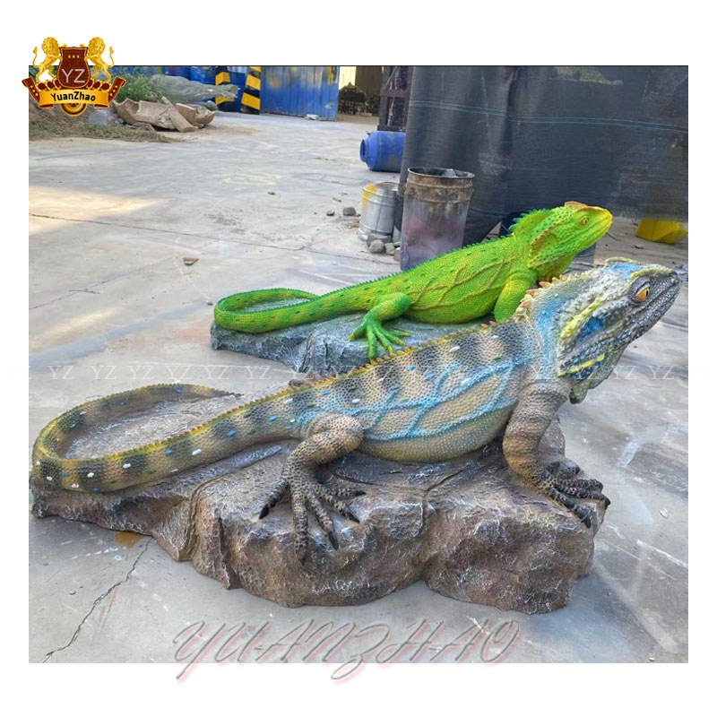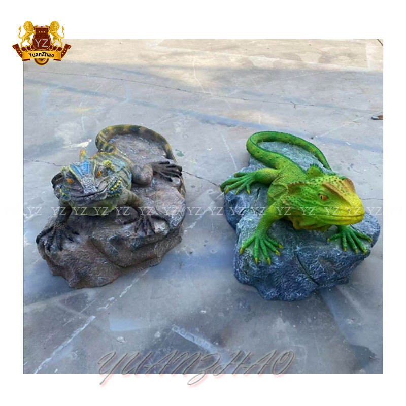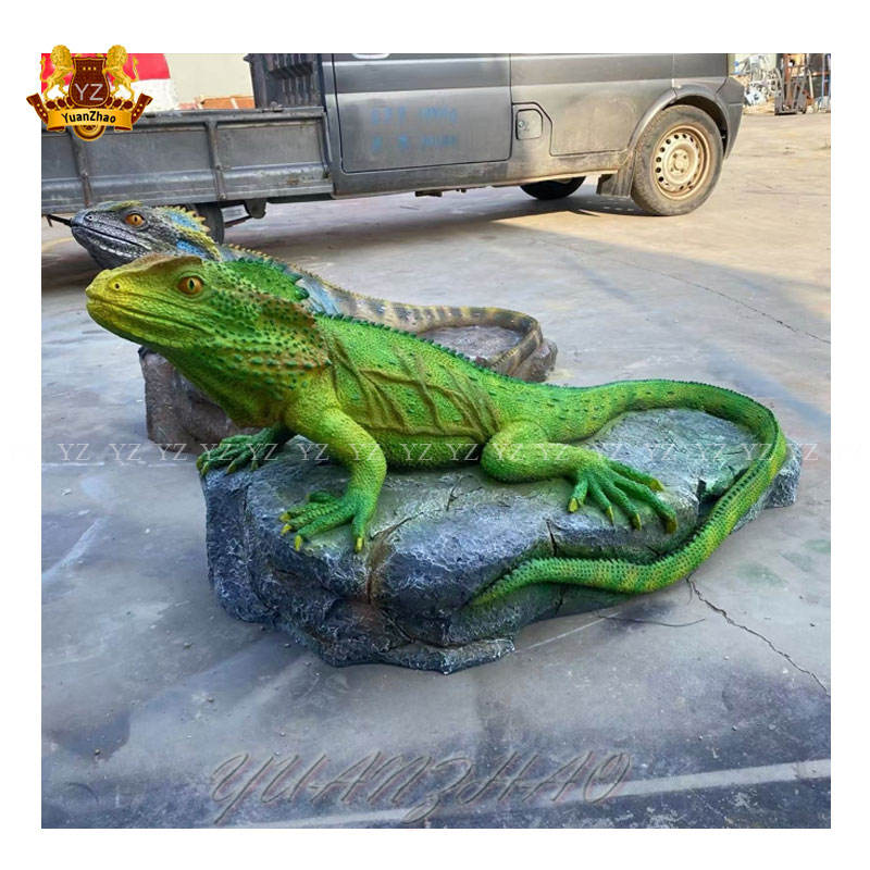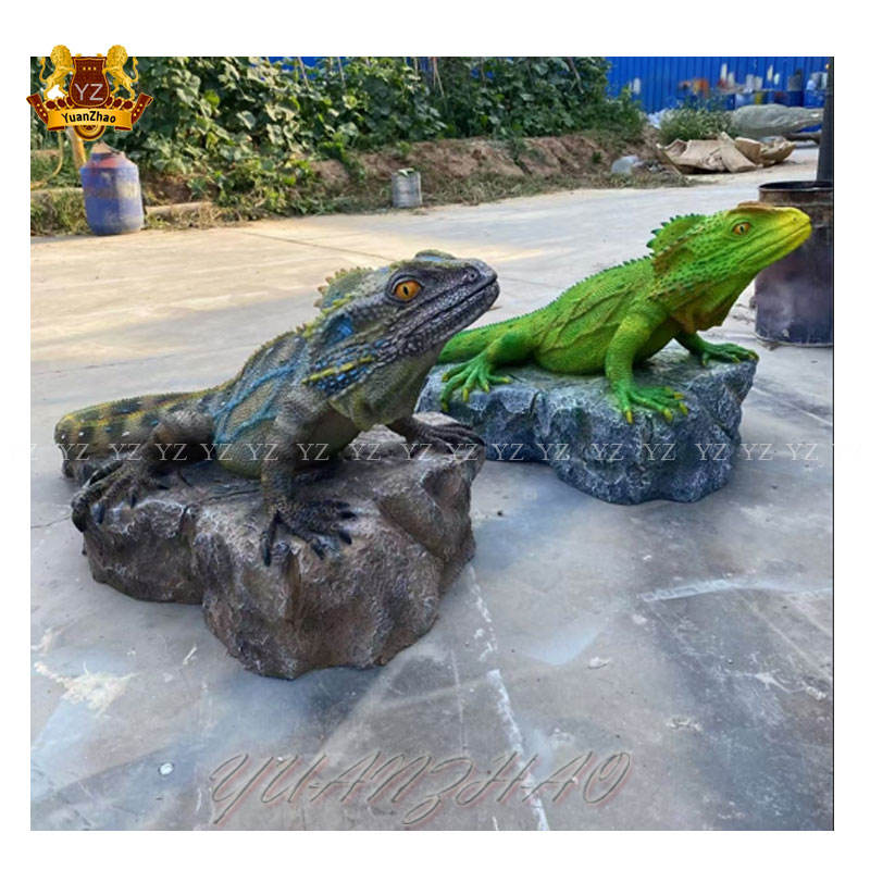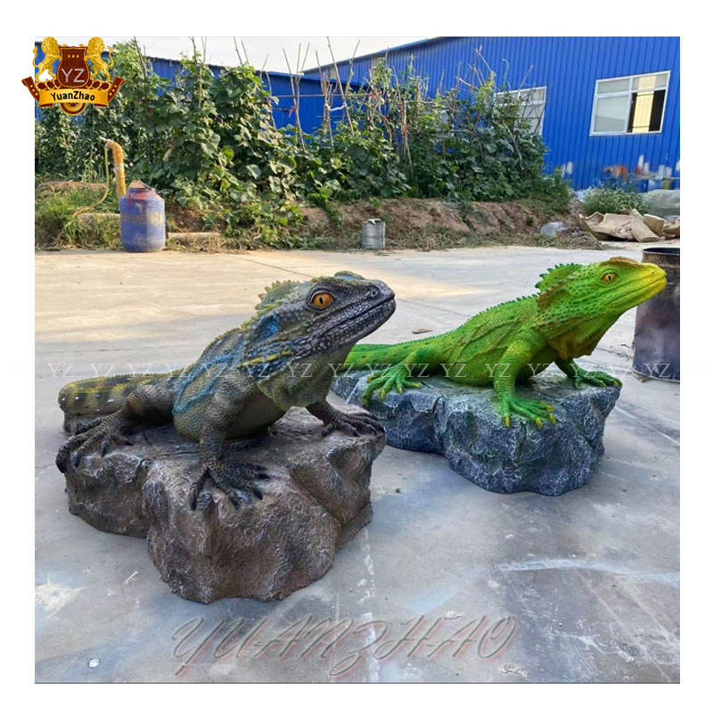 Personalizable tamaño real al aire libre jardín estatua resina fibra de vidrio arte escultura de Animal lagarto pintado modelo para uso artesanal