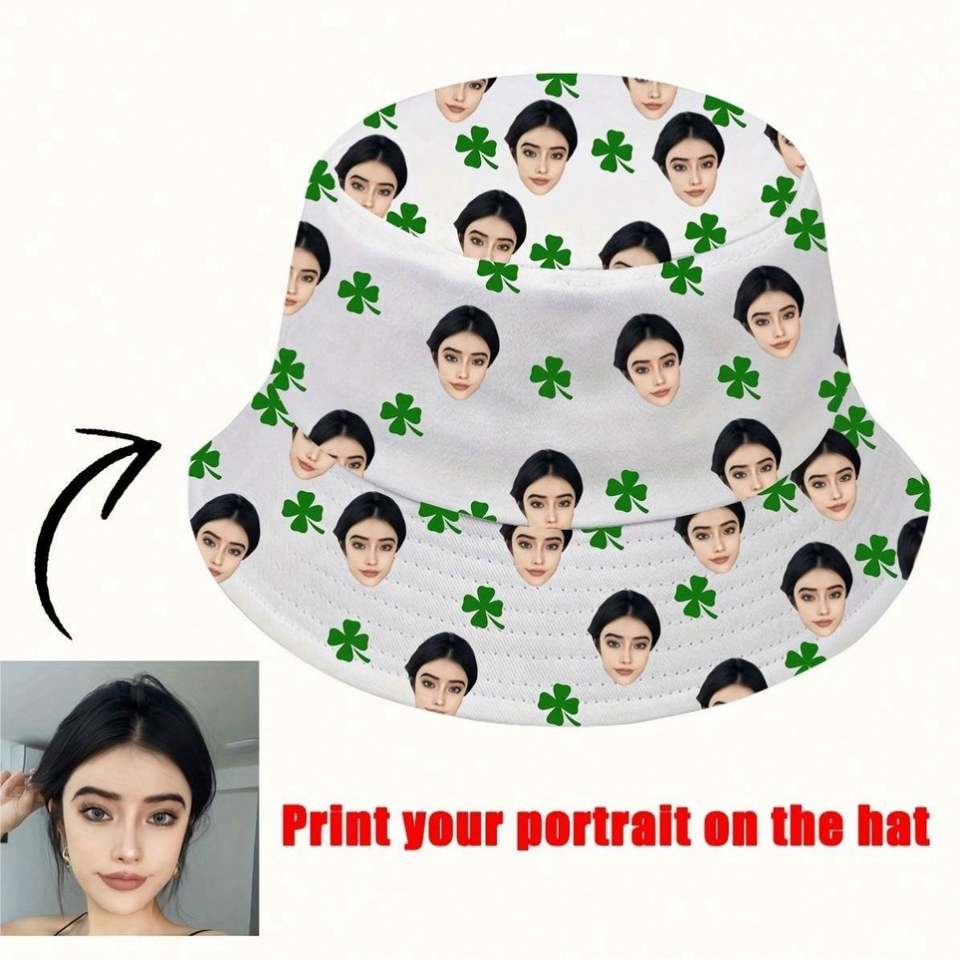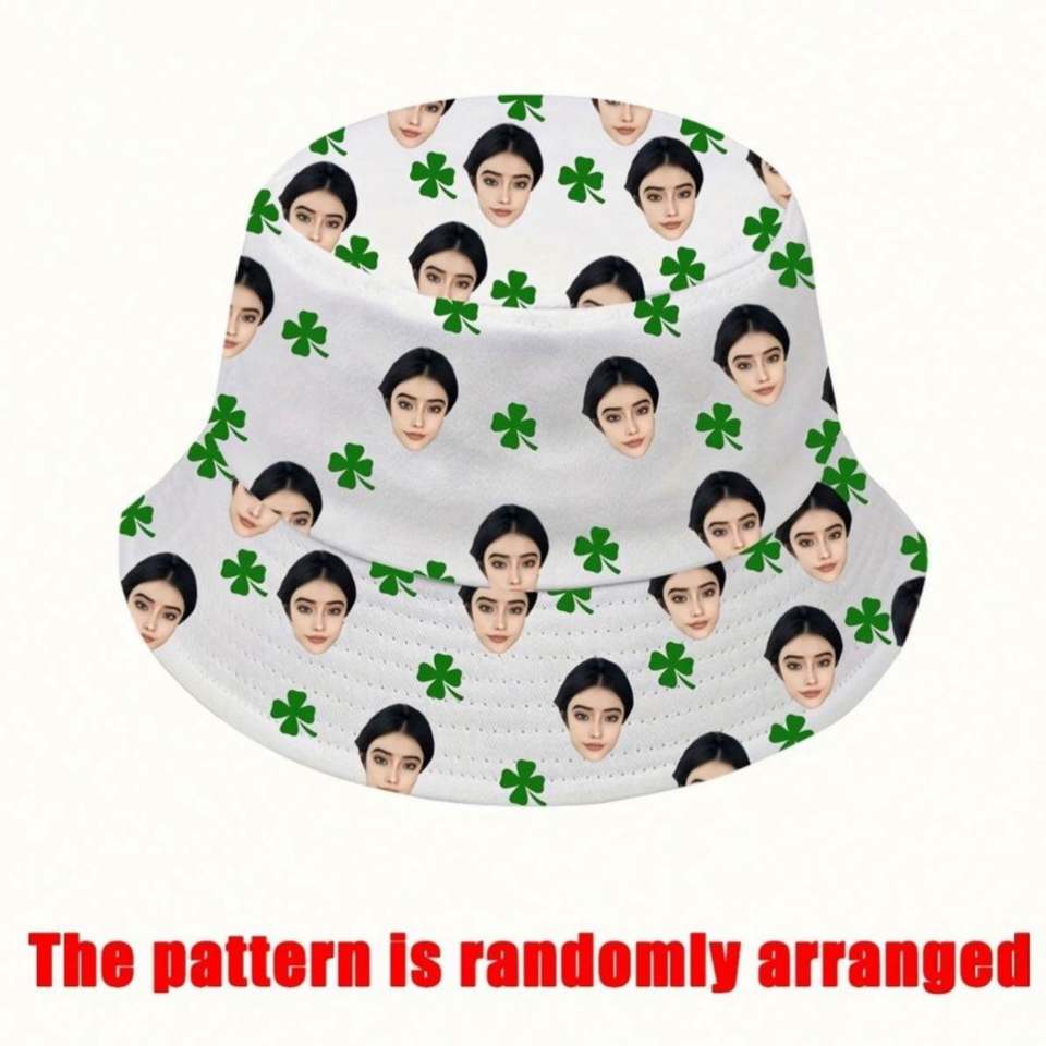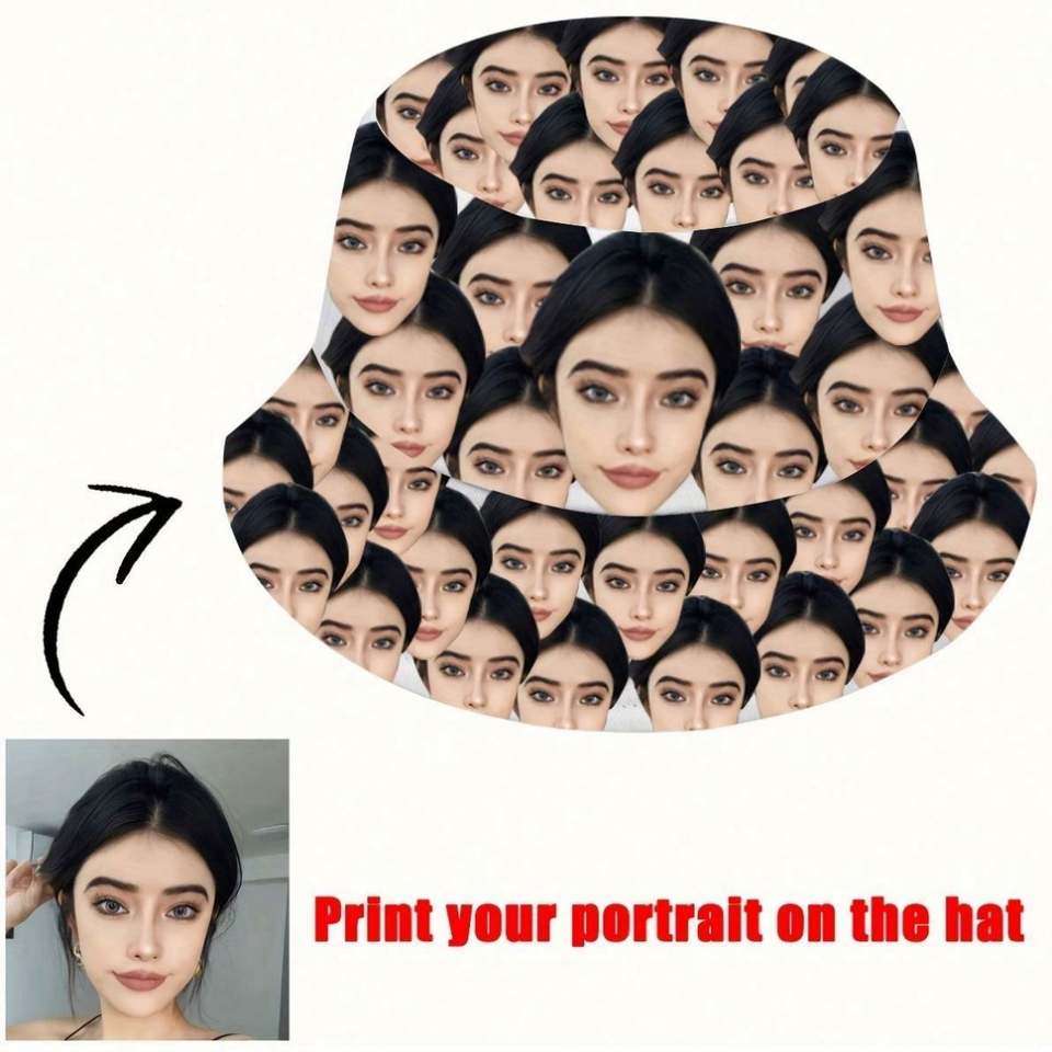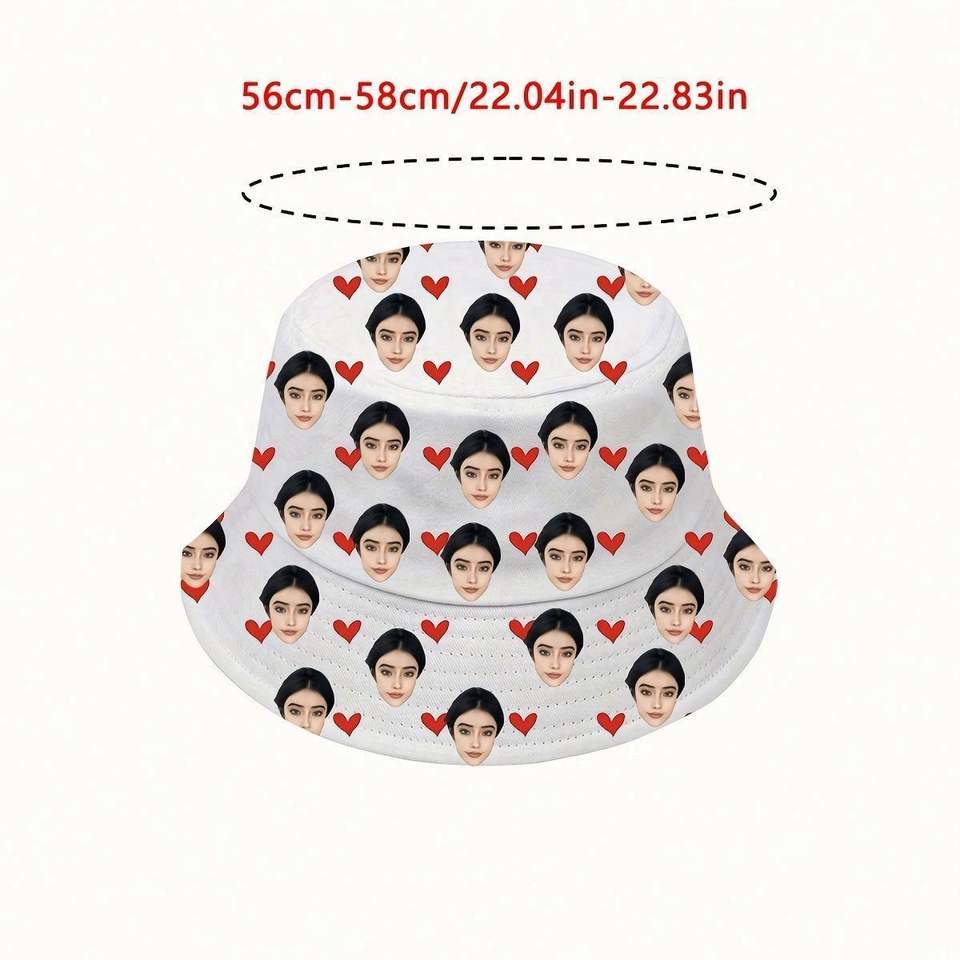 Sombrero de Pescador Ligero Personalizable, 1 Pieza, Impresión de Retrato Personalizado, Patrón de Corazones Aleatorios, Ropa Casual, Regalo, Tipo Dibujo Animado