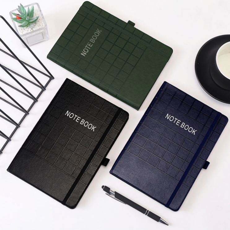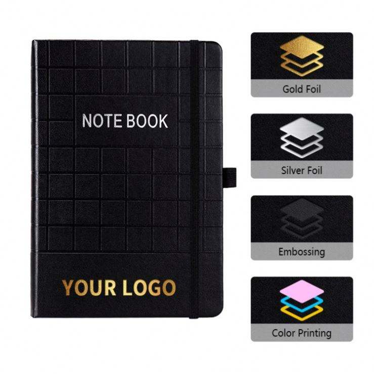 Cuaderno Personalizable con Logotipo, Negro, con Páginas Rayadas, Tapa Dura de Cuero PU, Tamaño A5, para Oficina