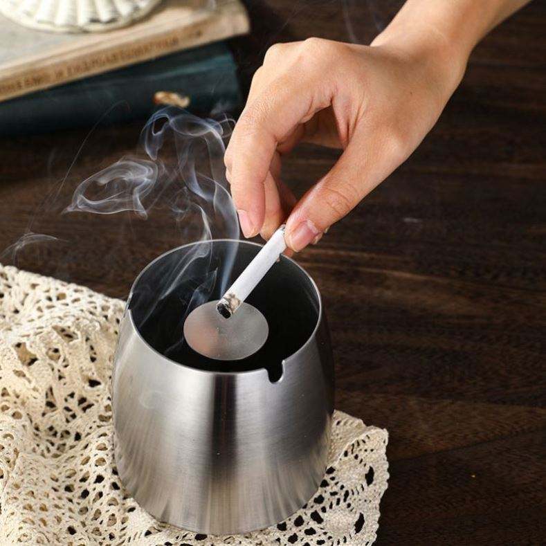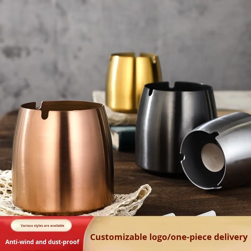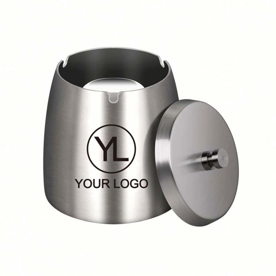Cenicero de Acero Inoxidable Clásico Personalizable con Logotipo, Grueso, Sin Humo, Fácil de Limpiar, para Cigarros, para Hotel o Bar