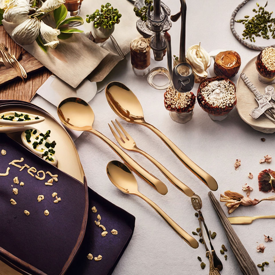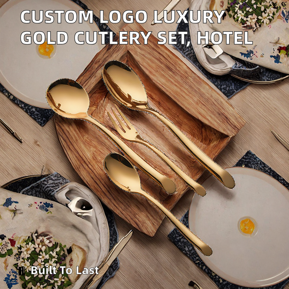 Juego de Cubiertos de Acero Inoxidable de Alta Calidad, Ecológicos, con Logotipo Personalizable, para Bodas, de Lujo, Dorados, para Hotel