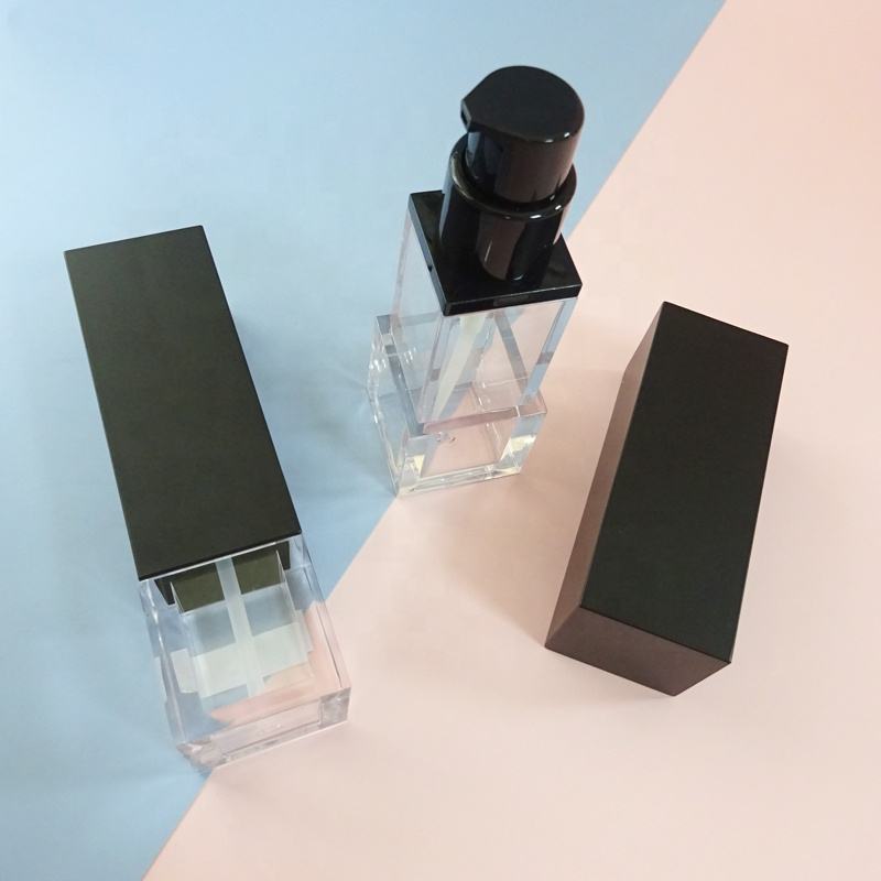 Botella de loción de plástico cuadrada de 30ml de alta calidad con logotipo personalizable con bomba Embalaje de base vacía para cosméticos