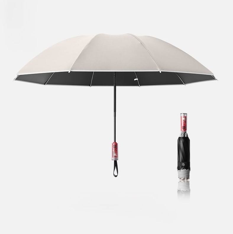 Paraguas de gran tamaño con logotipo personalizable, sistema antirrebote mecánico inverso totalmente automático, revestimiento negro, Material POE plegable