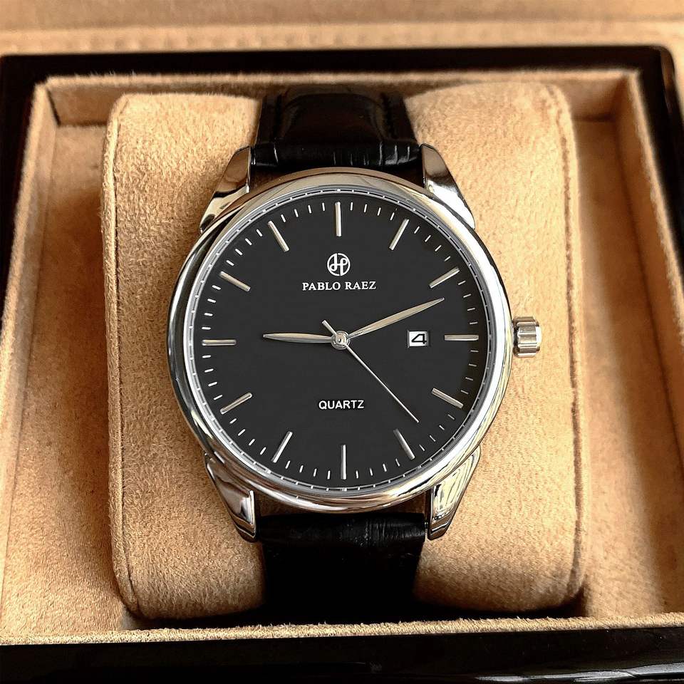Reloj de Cuarzo para Hombre Pablo Raez con Logotipo Personalizable, Resistente al Agua, Esfera Grande, Visualización de Fecha, Caja y Correa de Acero Inoxidable, Reloj de Pulsera Ejecutivo