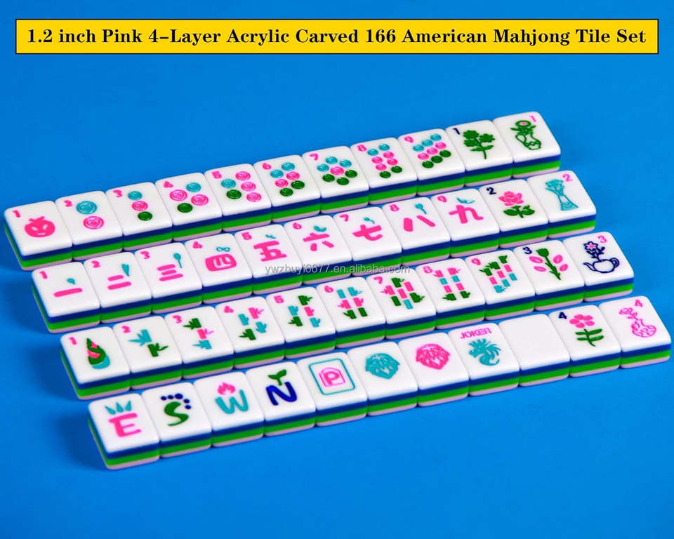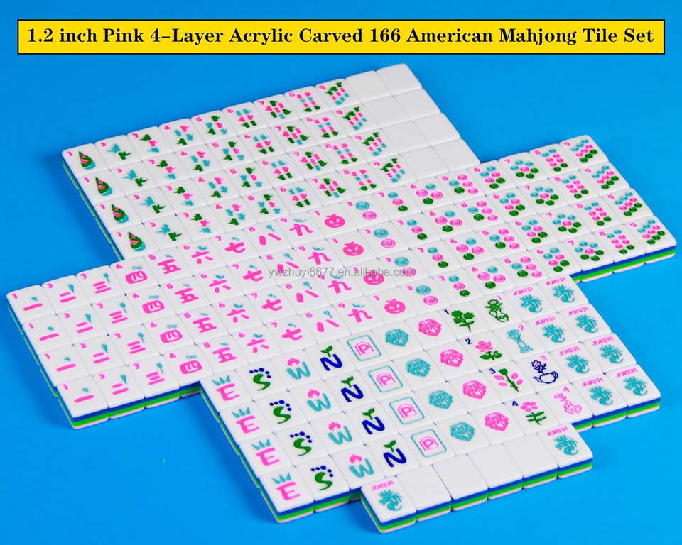 Juego de Mahjong Americano de 166 Fichas, Personalizable con Logotipo, Patrón de 1.2 Pulgadas, Color Rosa, 4 Capas, Acrílico Tallado, con Cuatro Soportes Resistentes