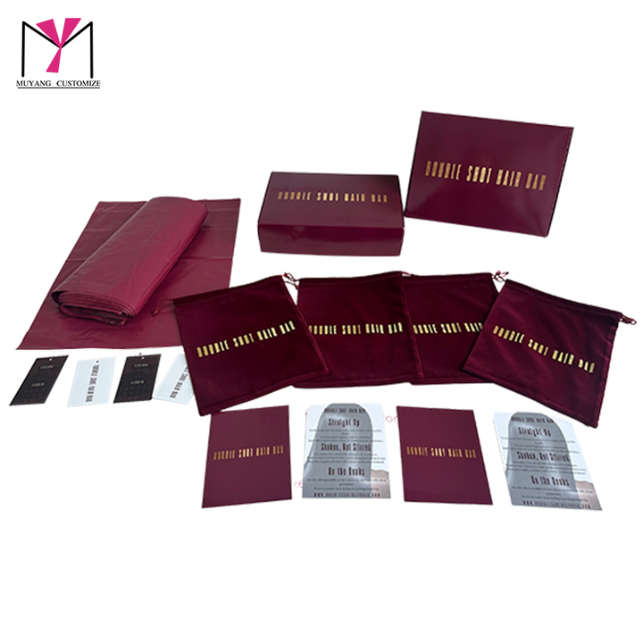 Set de Bolsas para Cabello Personalizables con Logotipo, en Terciopelo Rojo Suave, con Cinta y Etiqueta