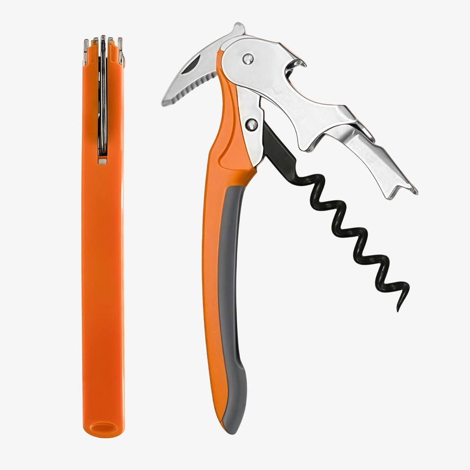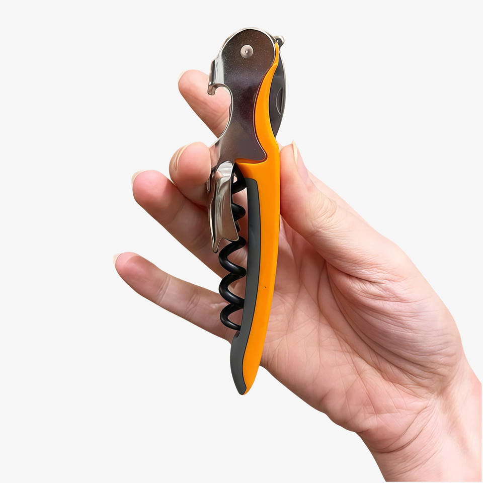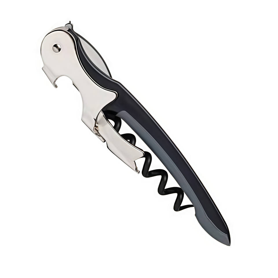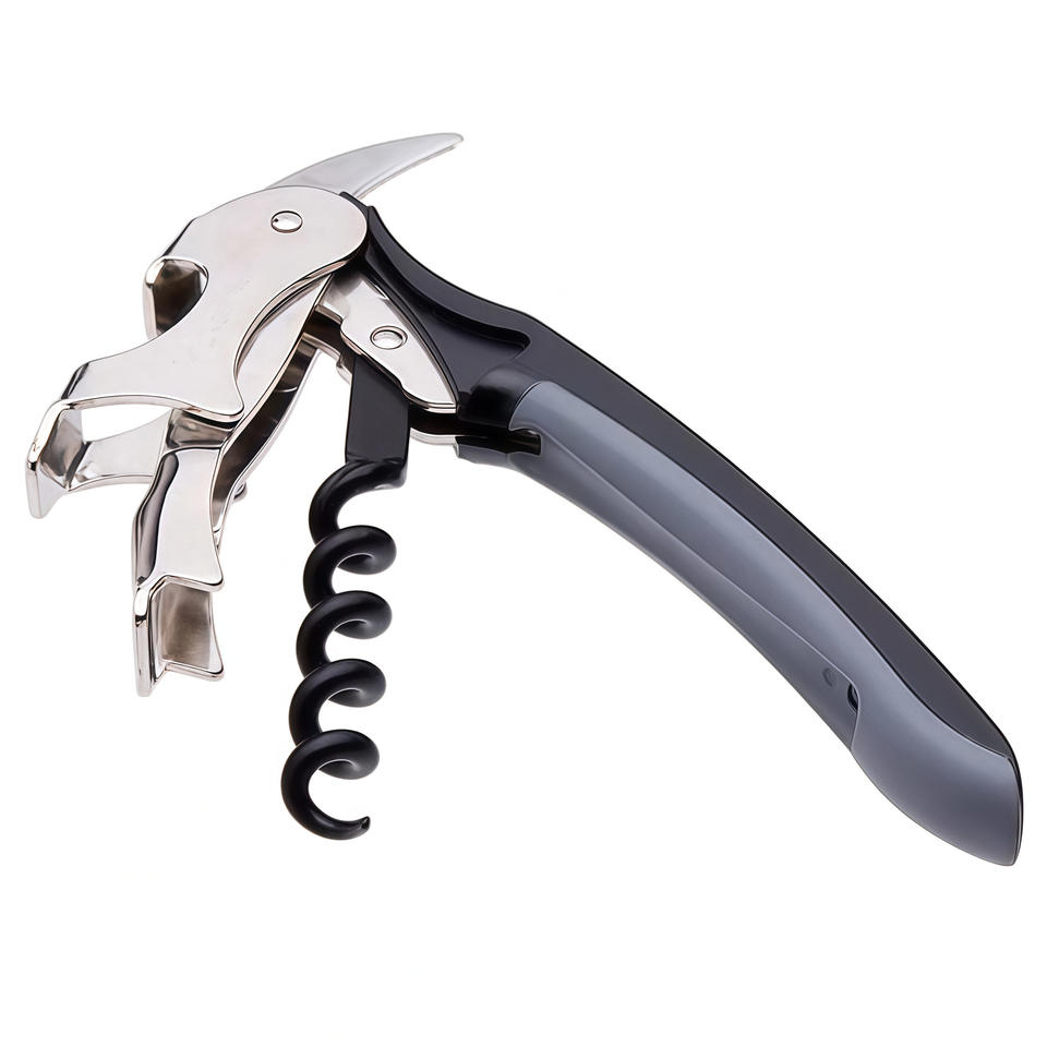 Sacacorchos de camarero de dos pasos Murano de tacto suave con logotipo personalizable y espiral antiadherente
