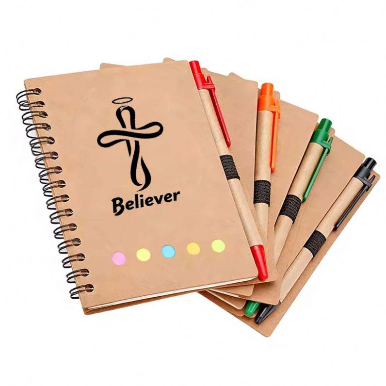 Libretas Personalizables con Logotipo Cristiano para Promoción, Libreta Kraft Personalizada con Bolígrafo, Notas Adhesivas, Libreta Espiral