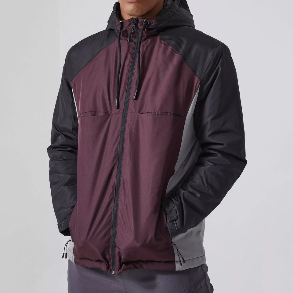 Conjuntos de Chaqueta Cortavientos Color Granate Personalizables, Diseño Relajado, Acolchados, Resistentes al Desgarro, Manga Larga, Estilo Color Block, Unisex, Transpirables para Verano