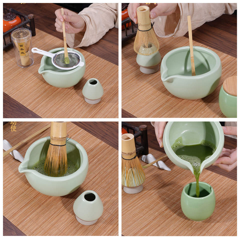 Juego personalizable de batidor Matcha, juego de té Matcha japonés de bambú, juegos de té de café Matcha, Chawan japonés