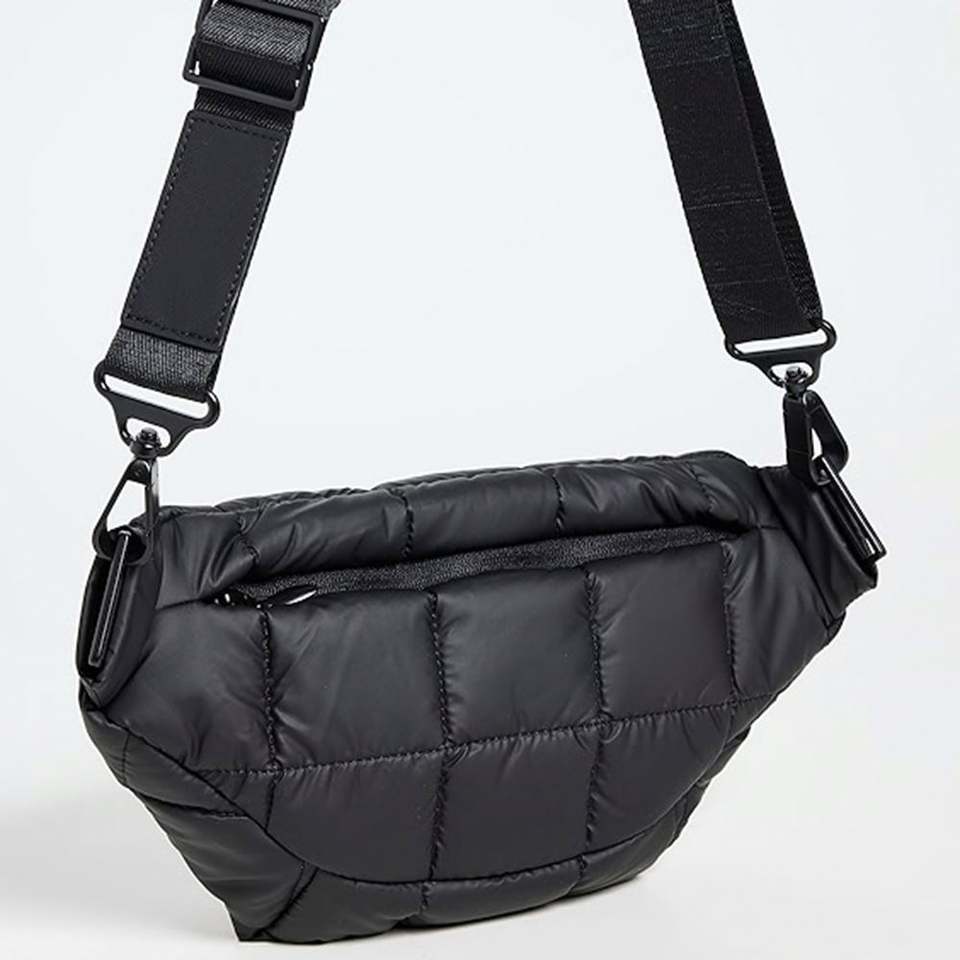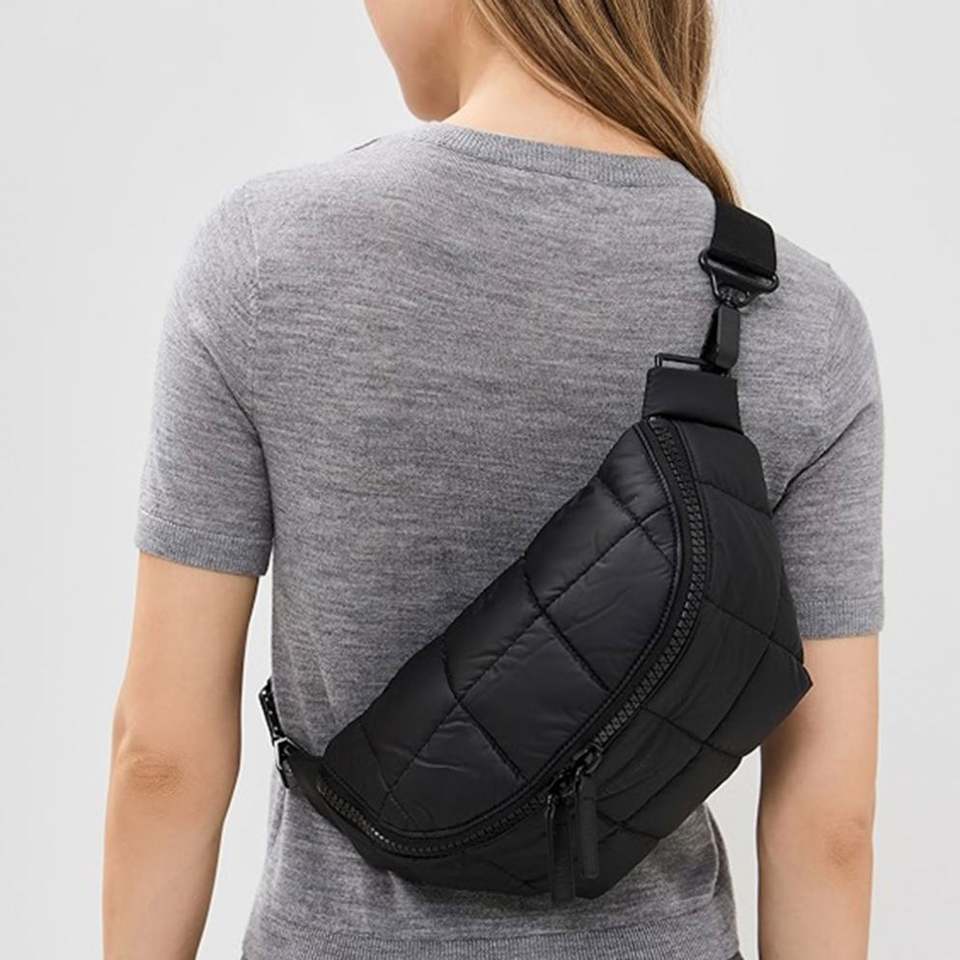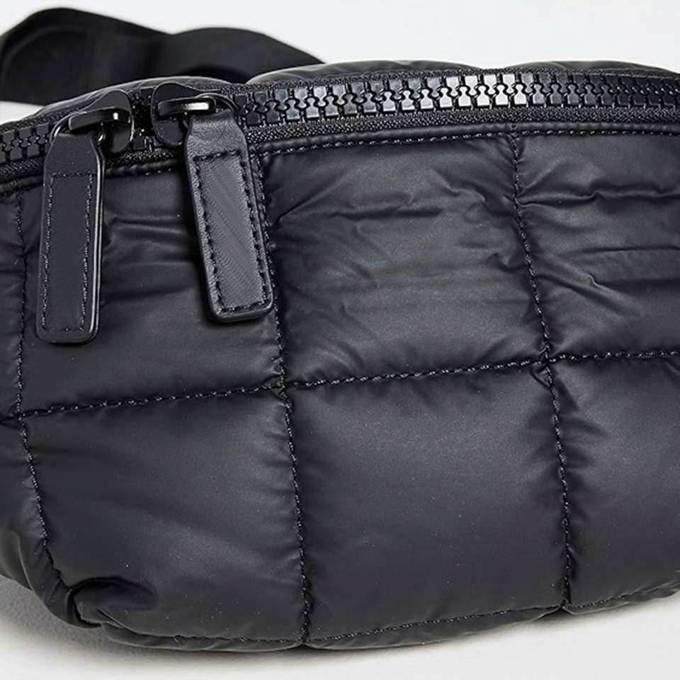Bolso Bandolera Personalizable Negro Mate con Cremallera, Impermeable, Acolchado, de Nailon, para Mujer, Moderno, Ajustable