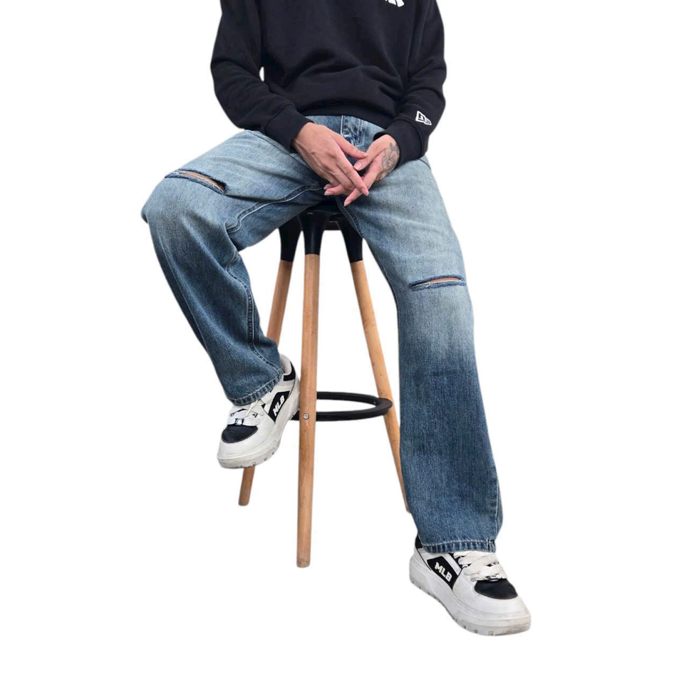 Pantalones vaqueros transpirables personalizables para hombre, pantalones vaqueros rectos lavados de primera calidad, nuevo estilo informal desgastado, estilo Harem ODM, hecho en Vietnam