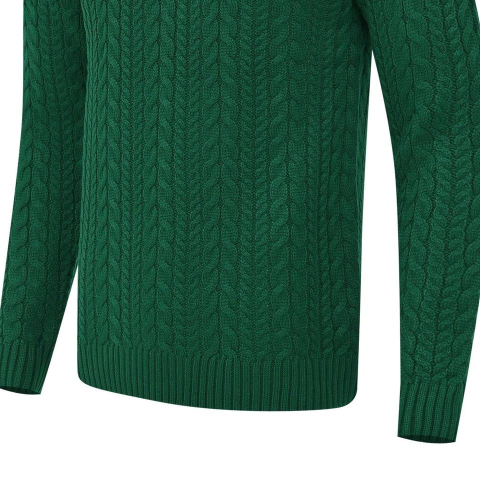 Suéter Personalizable para Hombre, Cuello Alto, Tejido de Cable Verde, Corte Holgado, Logotipo Frontal, Transpirable, Antiarrugas, Diseño Sólido